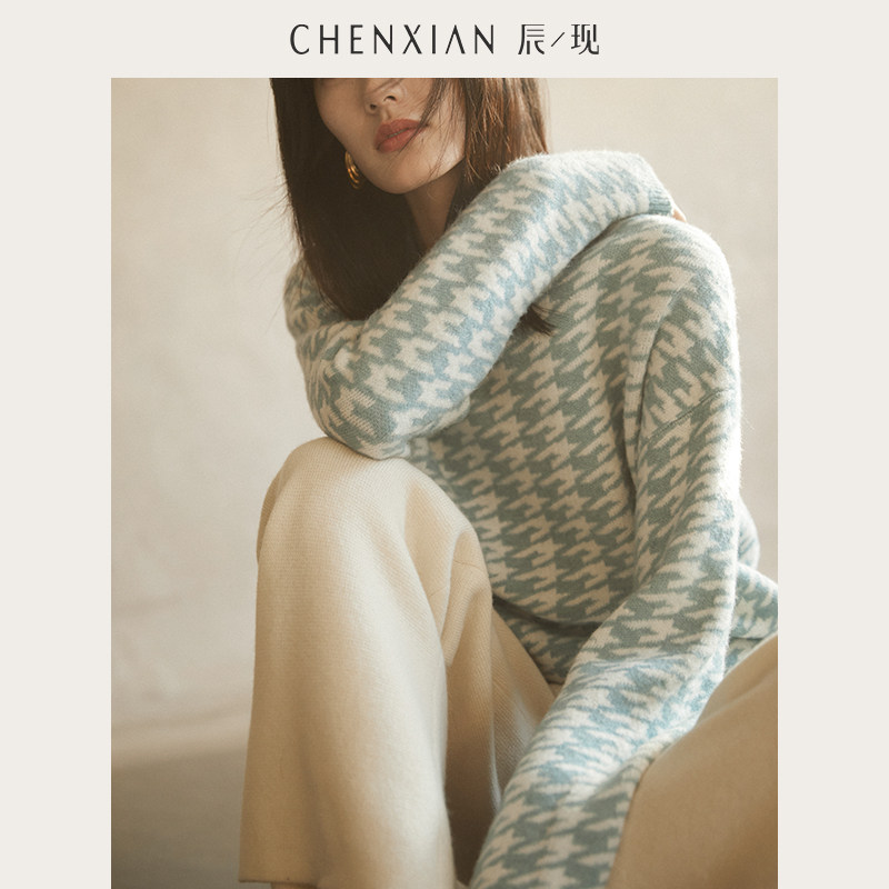 针织打底衫 品牌高级感羊毛衫 女半高领宽松毛衣秋冬加厚羊绒长袖