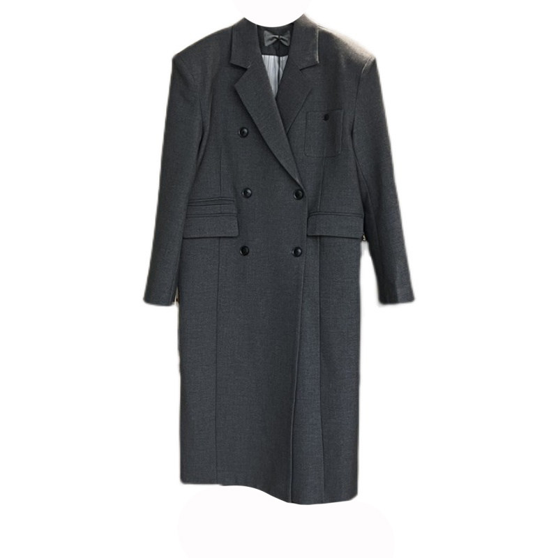 时尚 中长款 韩版 外套女2025春秋款 宽松双排扣高级感小西服风衣 西装