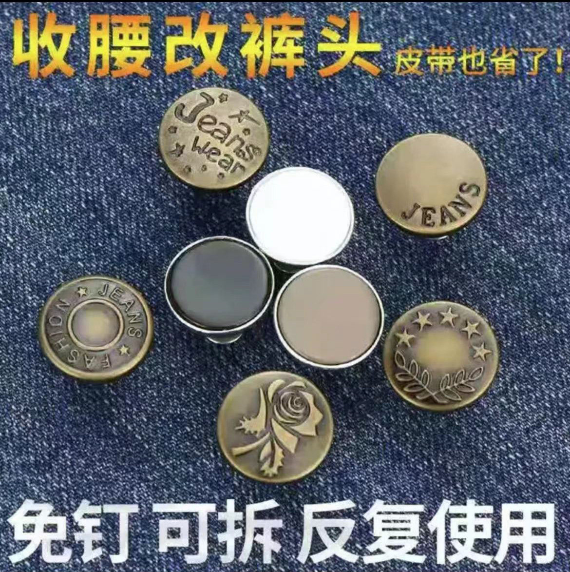 免钉牛仔裤 饰扣可调节免缝免打孔改腰扣百搭DIY暗扣 收腰纽扣装