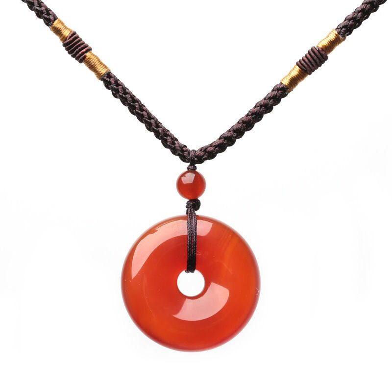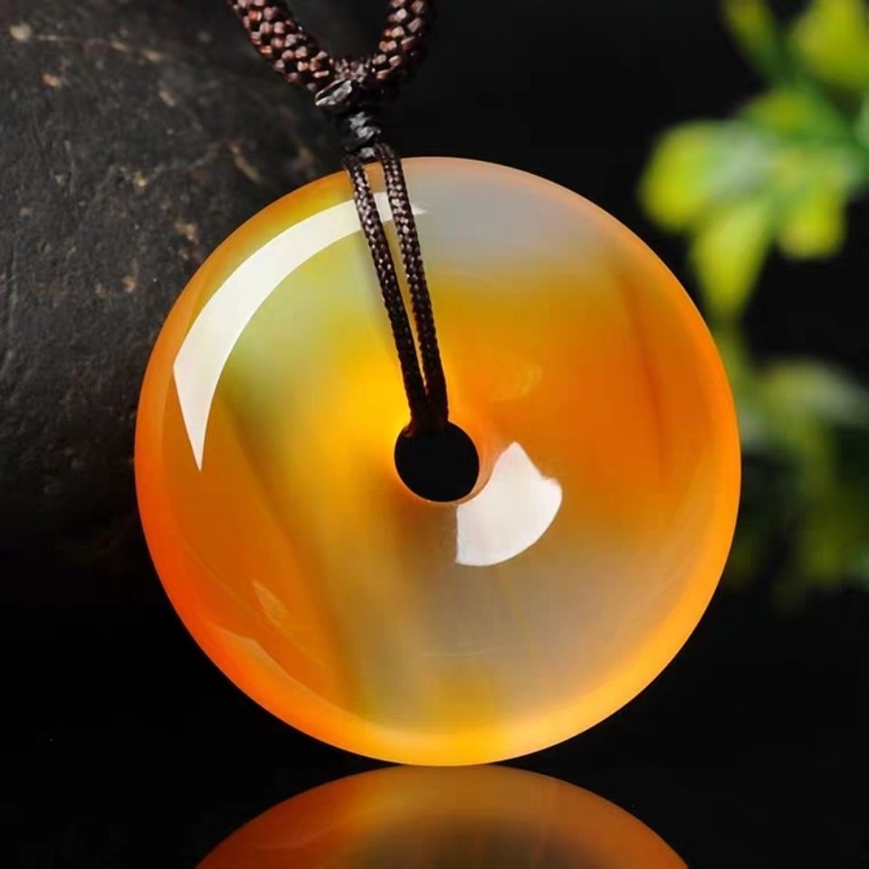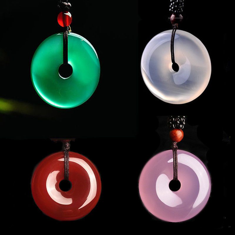 巴西天然玛瑙玉髓平安扣红绿粉糖色平安扣吊坠挂坠项链坠子情侣款