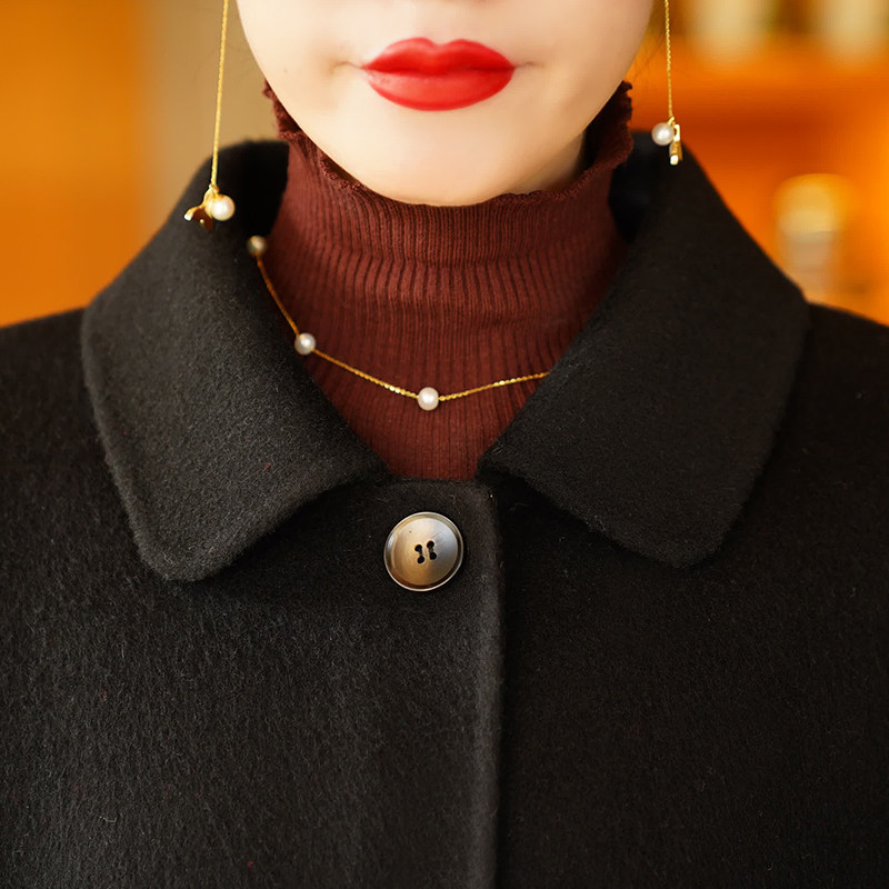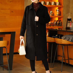胖mm特大码 毛呢外套 黑色赫本风呢子大衣女秋冬高级感慵懒风中长款