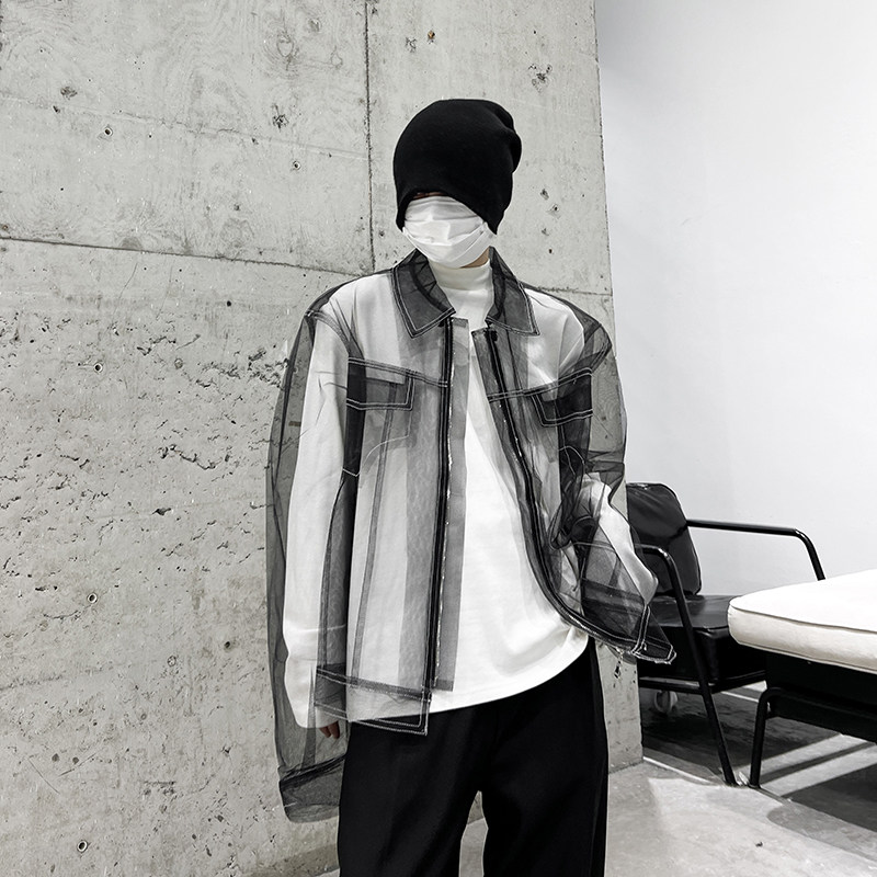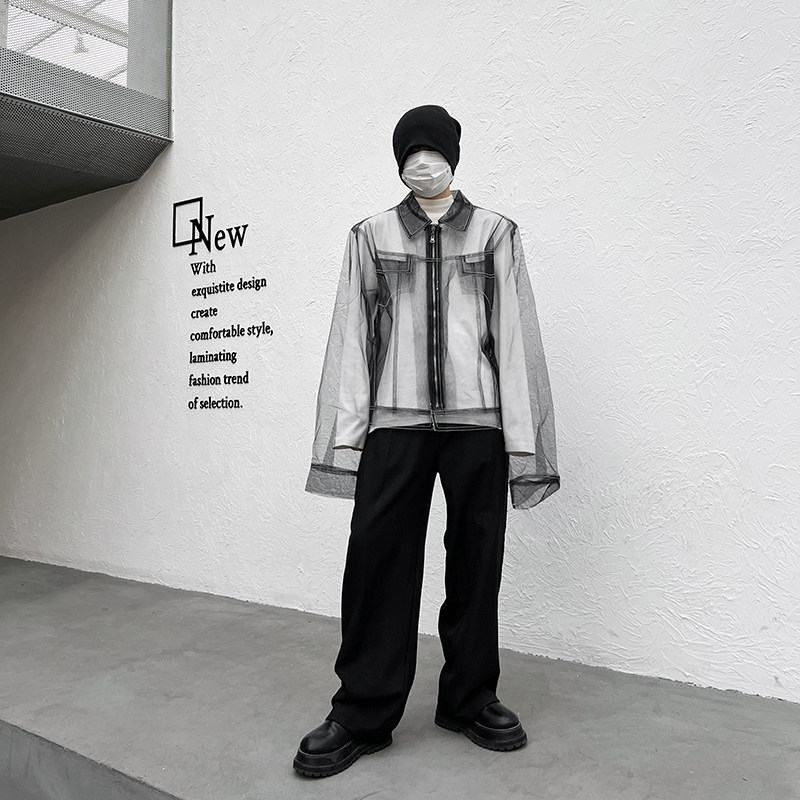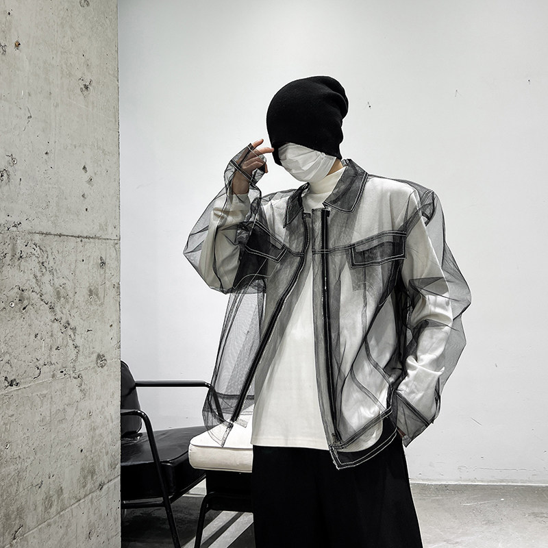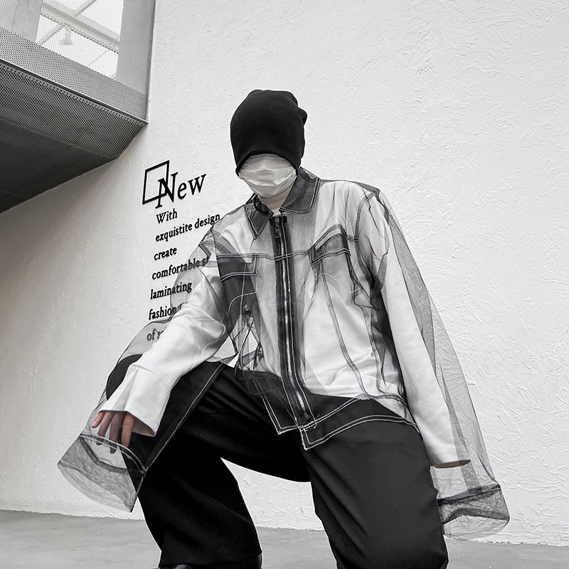 外搭时尚 透视长袖 洋气炸街夹克男女 小众网纱设计感上衣韩版 春夏季