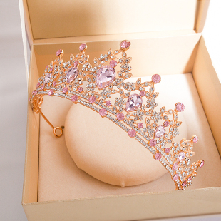 皇冠头饰儿童公主粉色女孩发饰生日发卡王冠女童演出水晶走秀发箍
