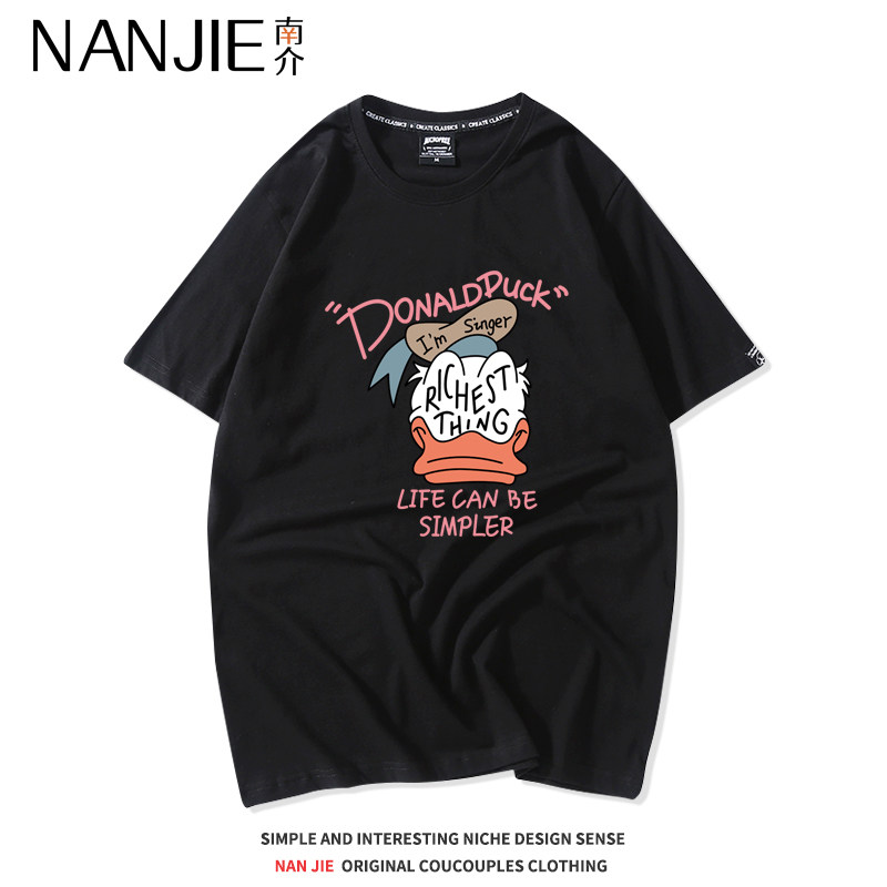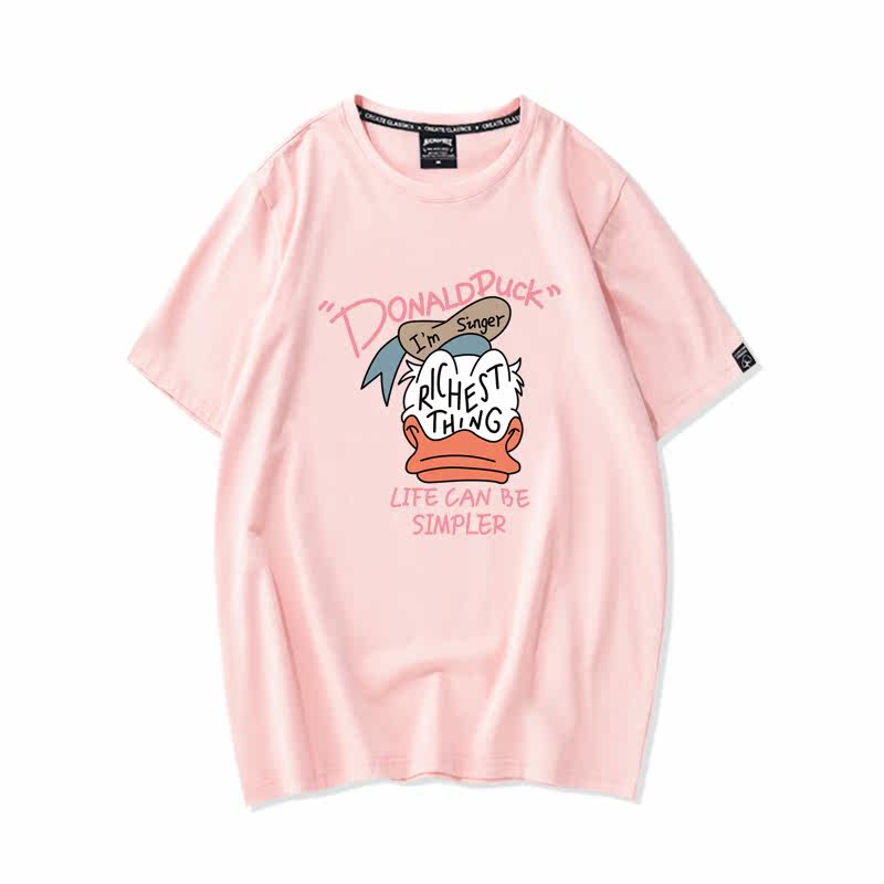体恤衫 高街潮牌宽松oversize学院风正肩半袖 T恤女美式 唐老鸭短袖