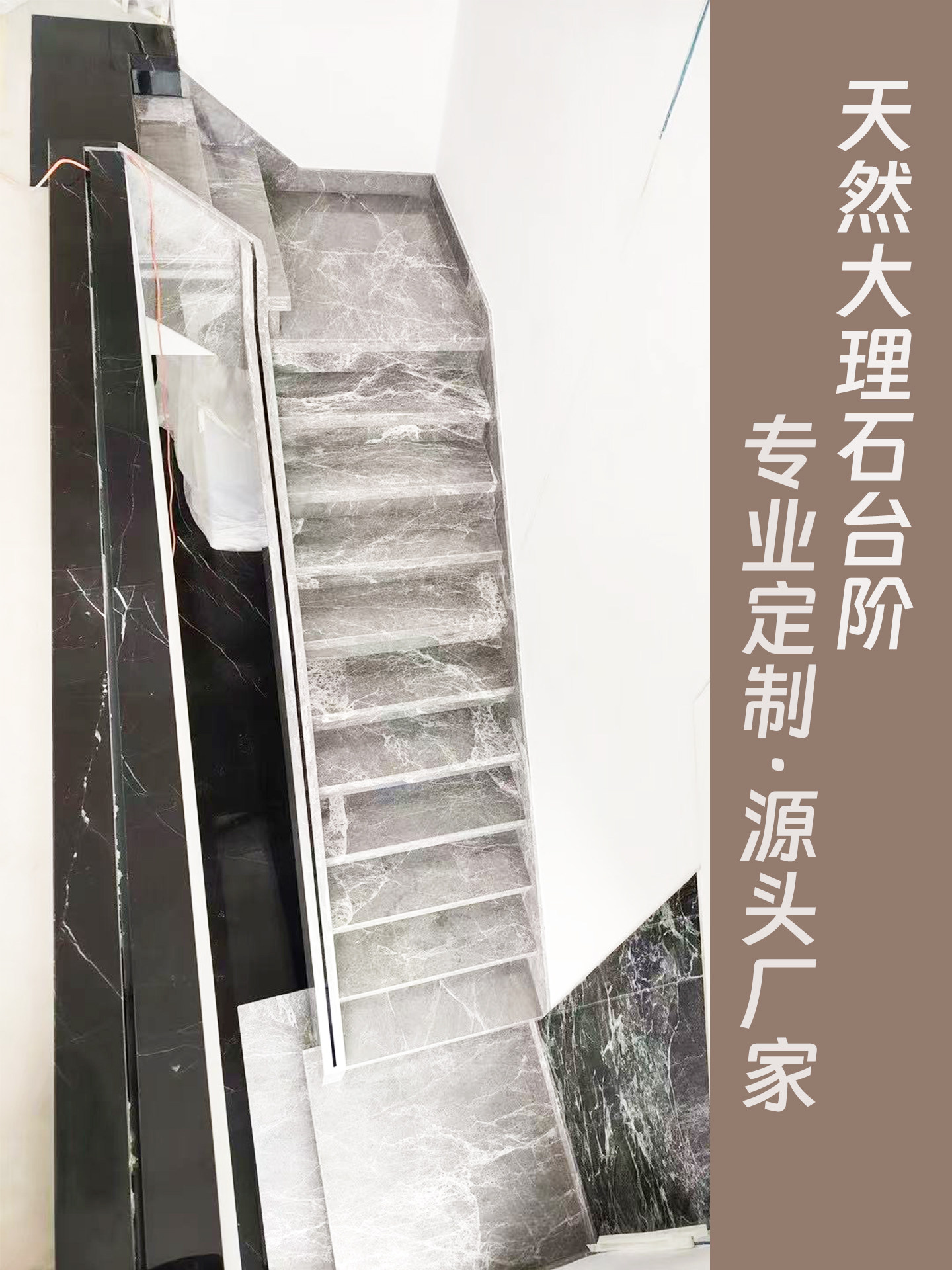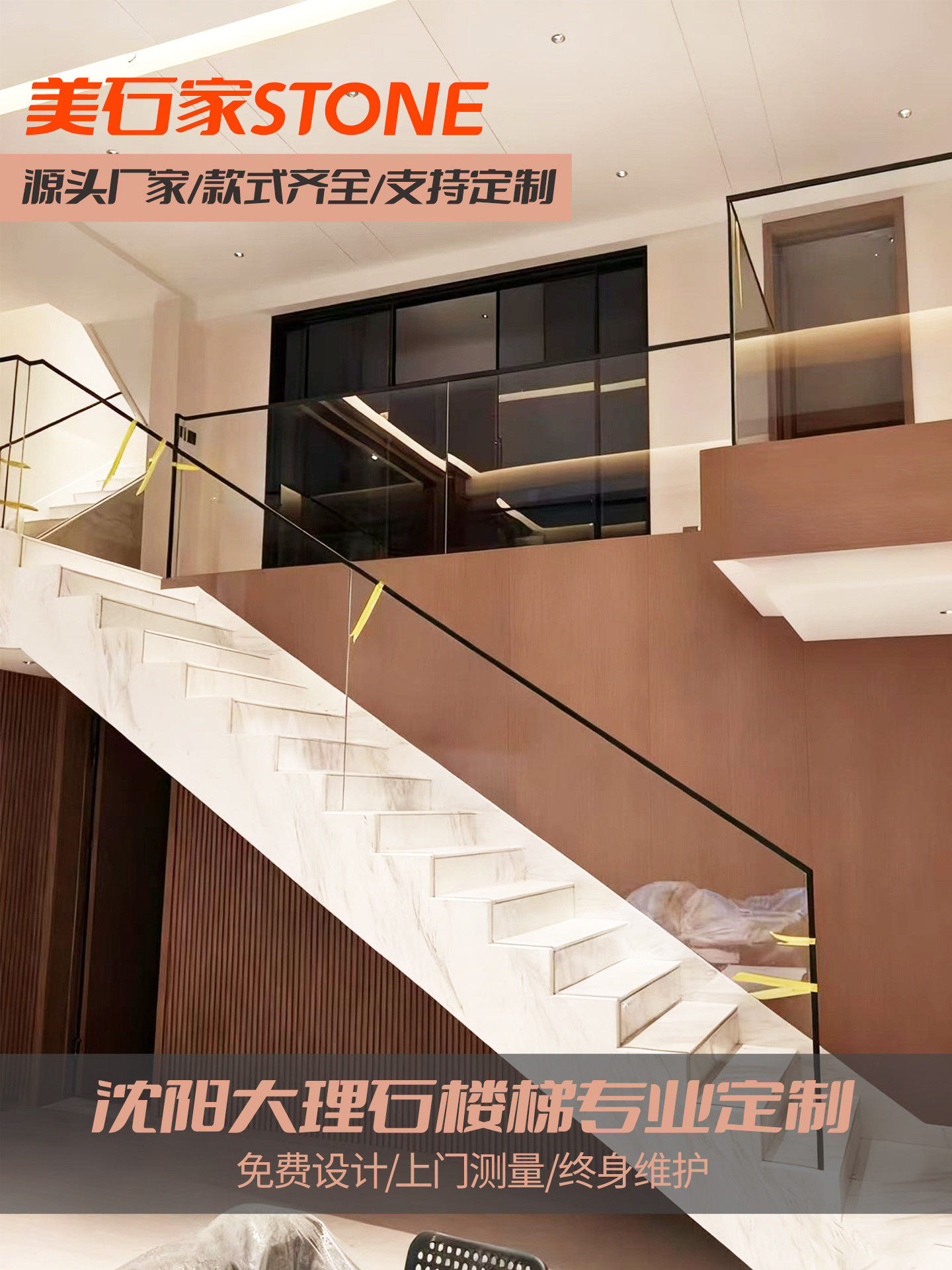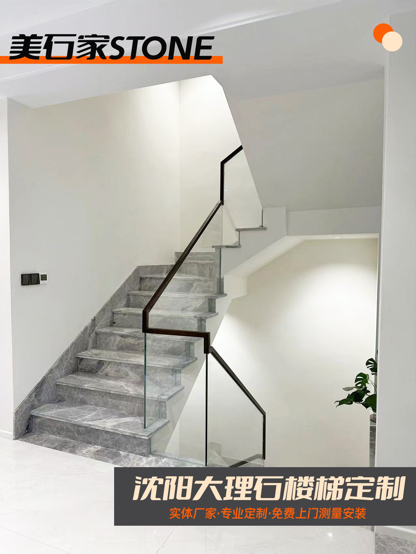 沈阳定制天然大理石楼梯踏步台阶板材别墅楼梯玻璃围栏岩板楼梯