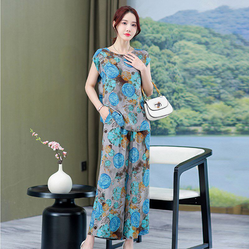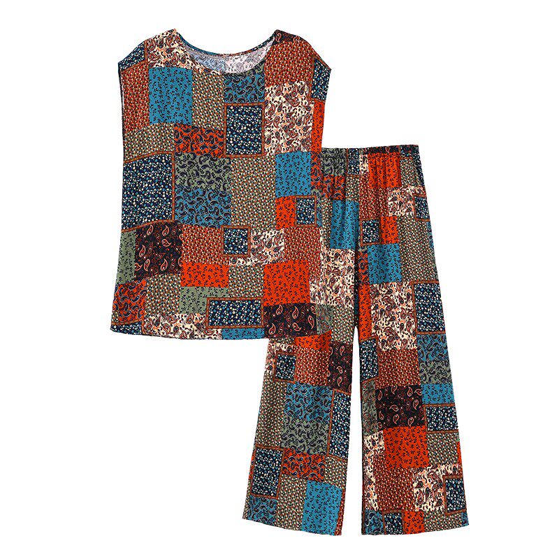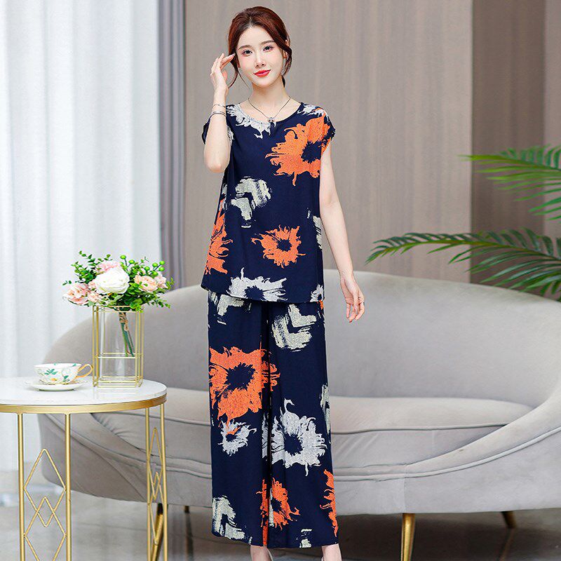 中老年人造棉短袖 老太太棉绸九分裤 p套装 妈妈装 子两件 女大码 新品