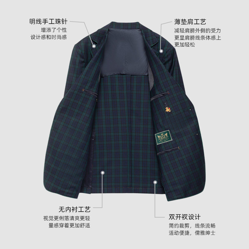 透气半里工艺高级定制西装 新款 外套格子西服男 男秋季 本派休闲西装