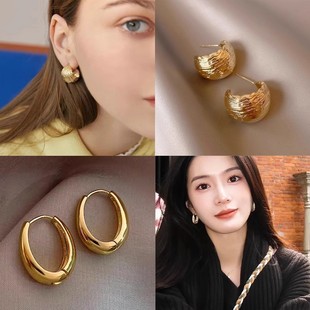 AJIDOU阿吉豆耳钉女金色耳扣小金豆耳环轻奢小众耳钩坠高级感饰品