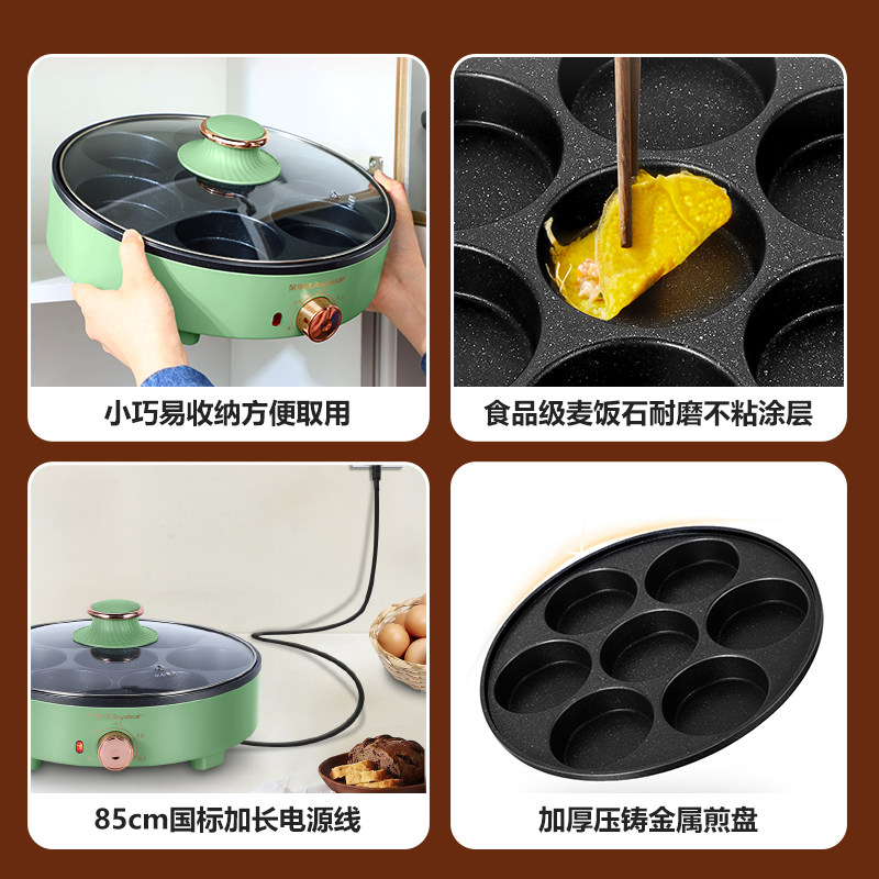 荣事达七孔煎蛋锅神器商用插电不粘锅煎荷包蛋汉堡机加大深蛋饺