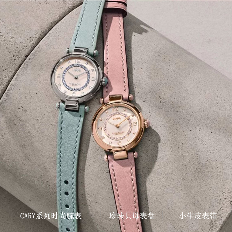 CARY贝母表盘镶钻石英皮带女表14503896 COACH蔻驰手表女 自营