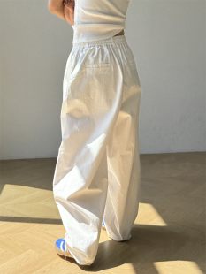 阔腿弯刀裤 白色休闲镰刀香蕉萝卜裤 慵懒宽松抽绳工装 新款 女 春季