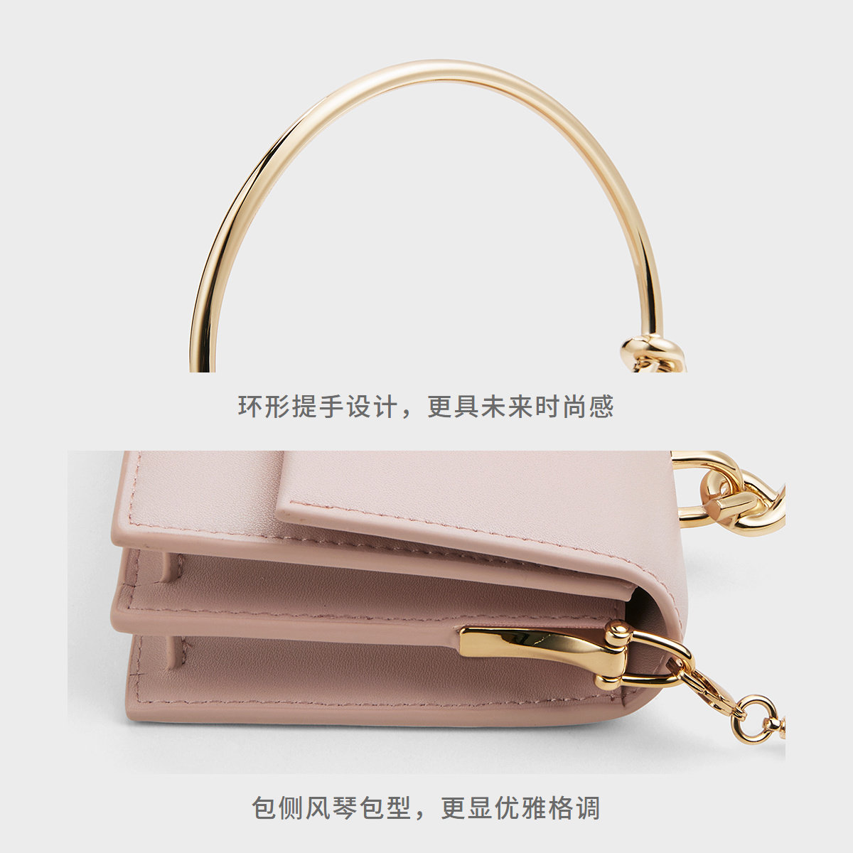 CHARLES&KEITH秋冬女包CK6 A金属手提链条斜挎小方包女 10840559