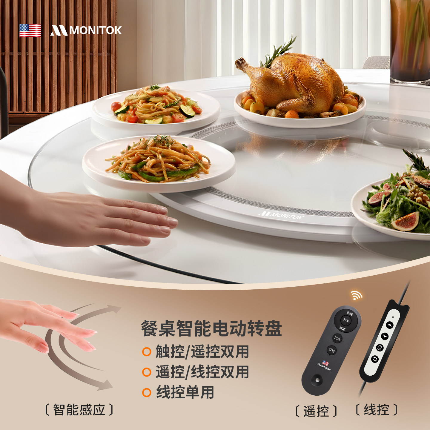 美国智能静音大圆桌家用商用超薄转盘芯自动旋转圆盘电动转盘底座
