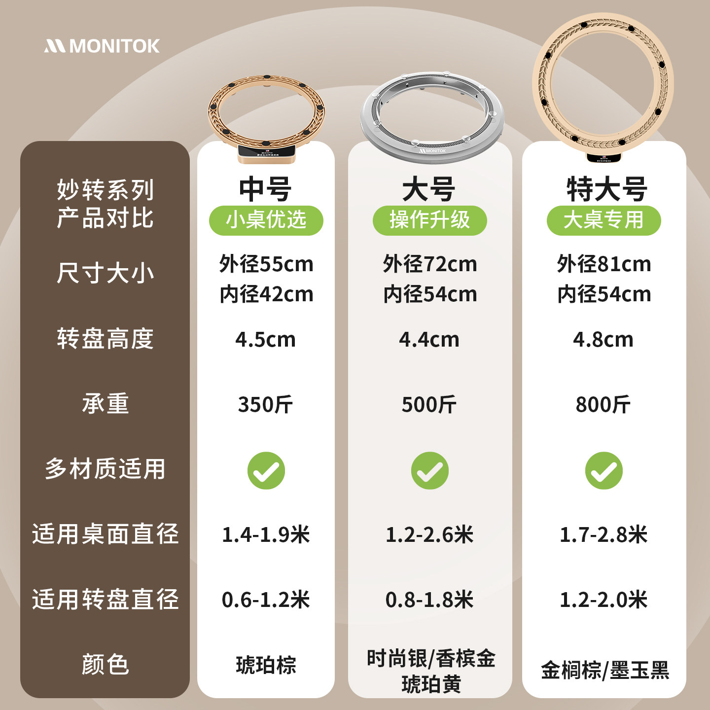 餐桌转盘底座消音铝合金底座玻璃实木大理石旋转轴承圆桌家用饭桌
