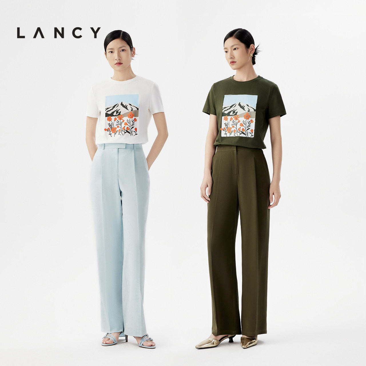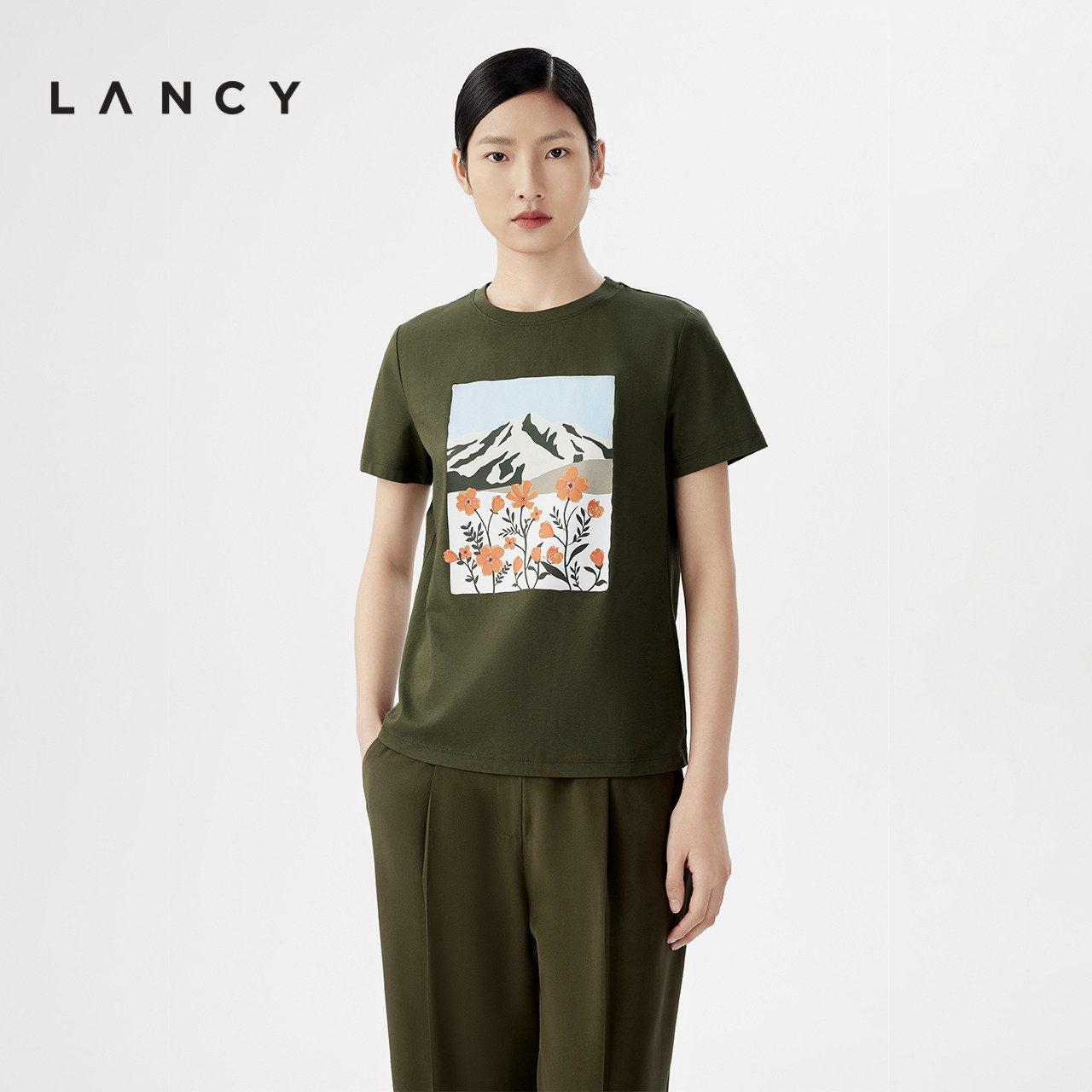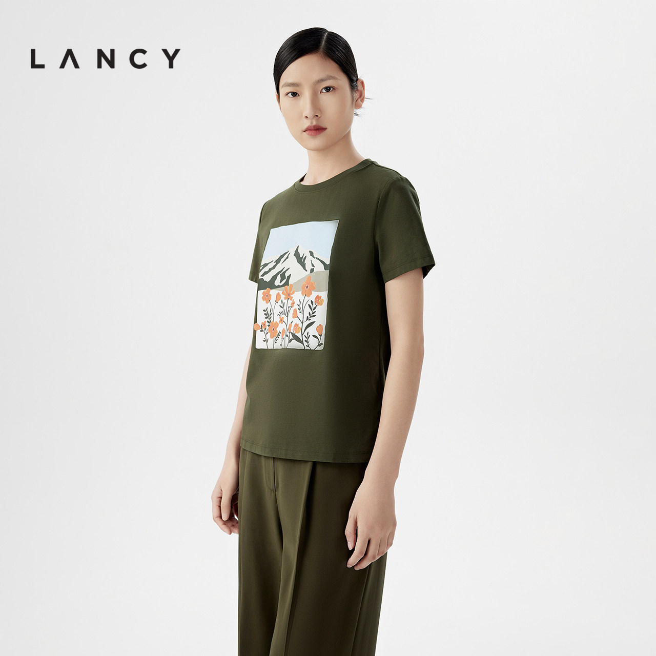 百搭短袖 LANCY 花卉印花棉质t恤女时尚 新款 上衣 朗姿2024夏季