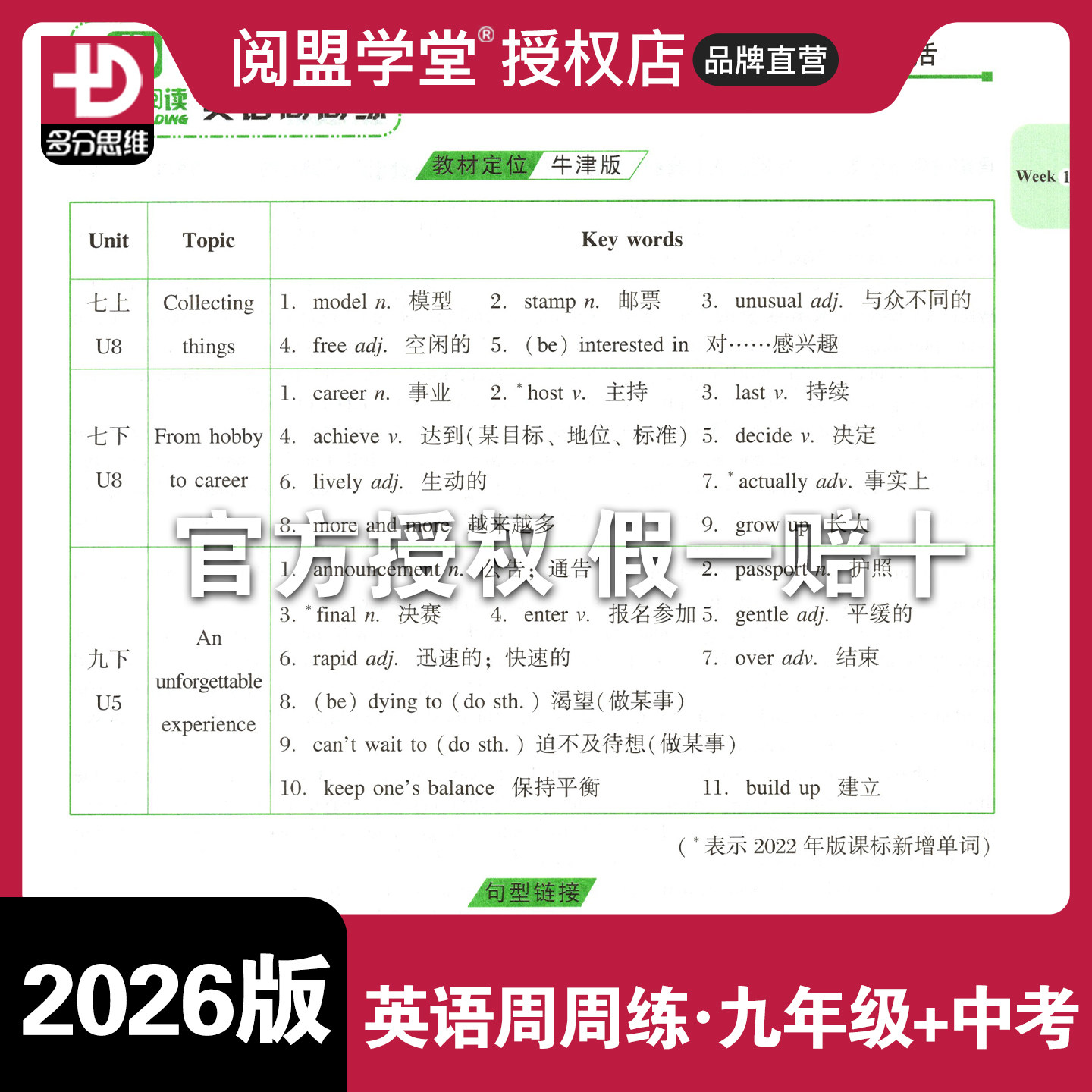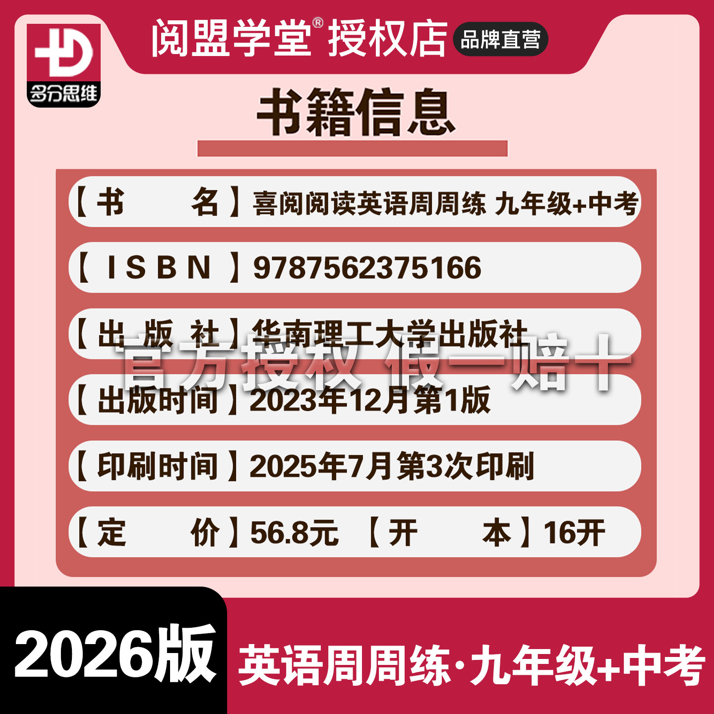 喜阅阅读英语周周练九年级中考广州专用版 2026新版 多分思维多分英语阅盟学堂初三九年级英语专项训练中考总复习用书 广州专用