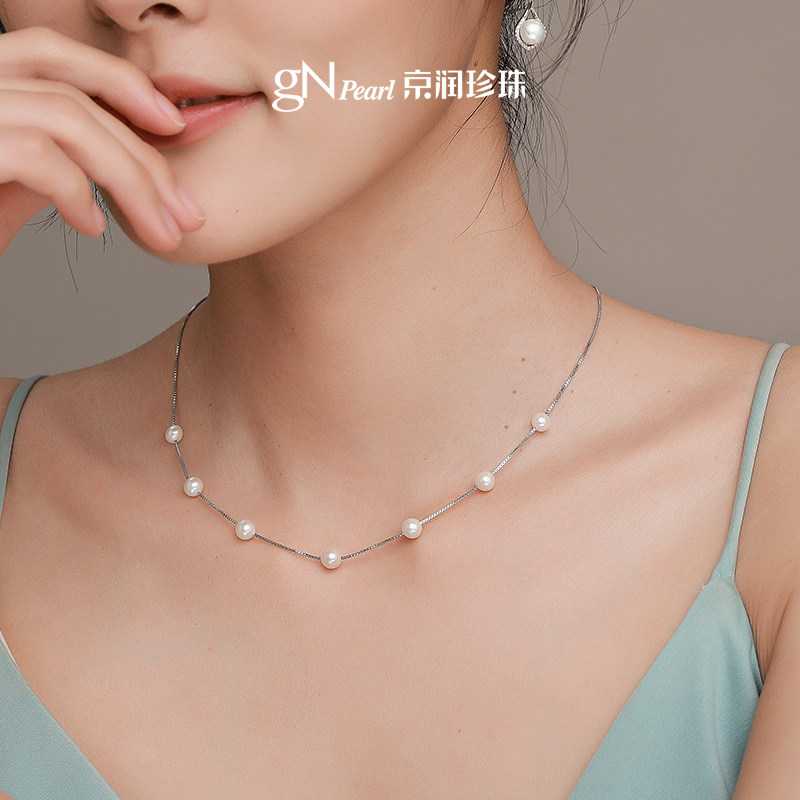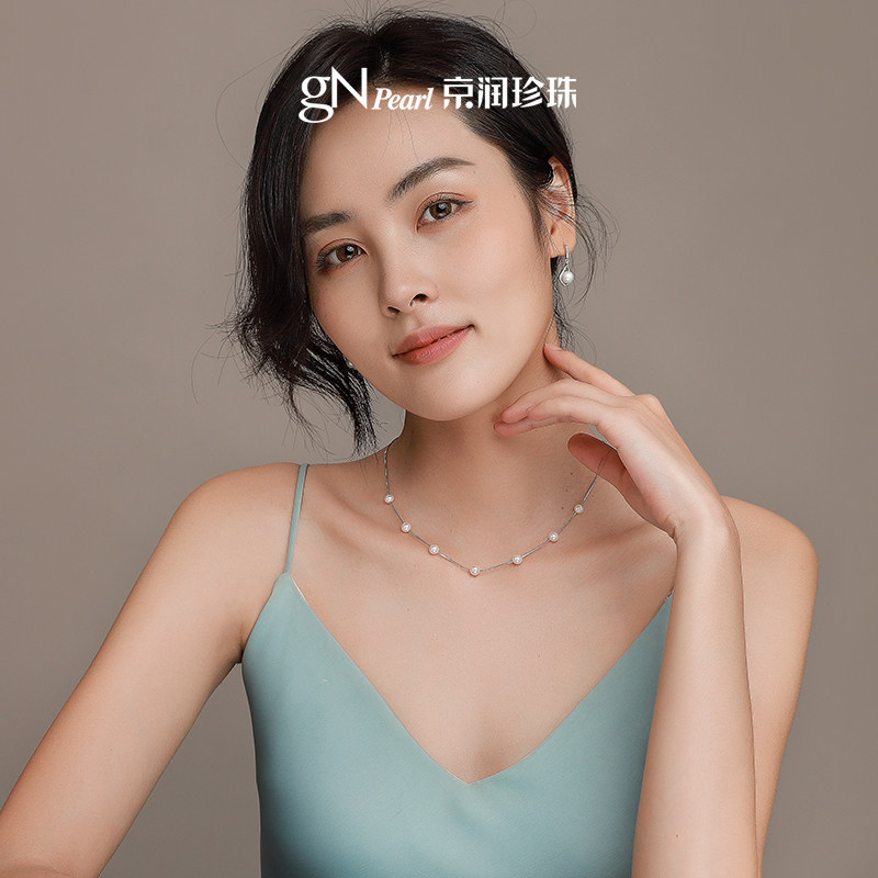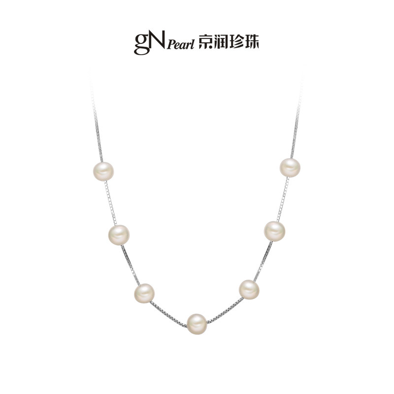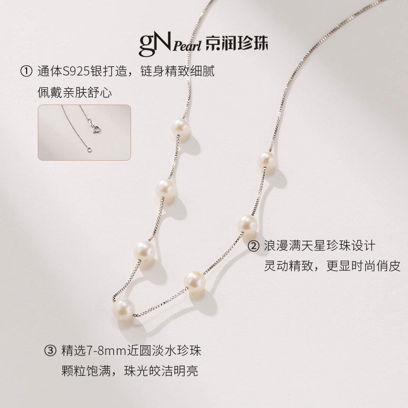 京润珍珠 8mm近圆形满天星项链项链首饰P 倾城之恋925银淡水珍珠7