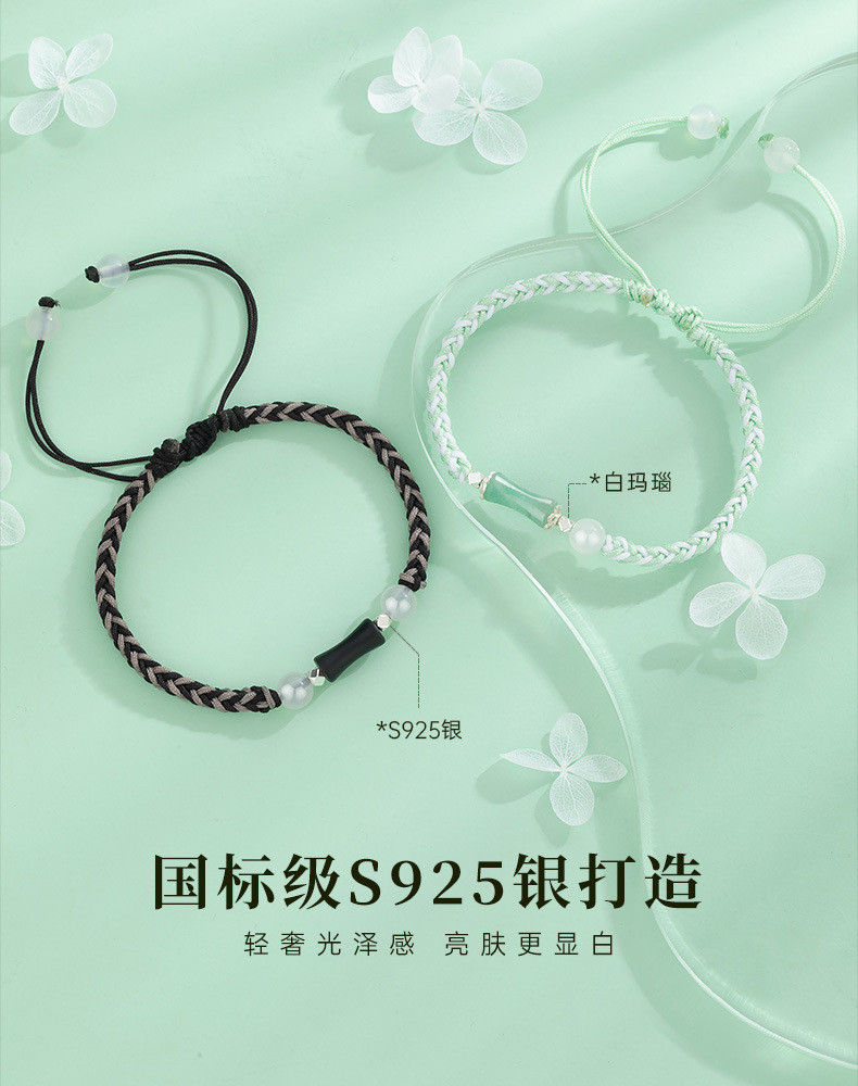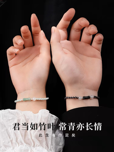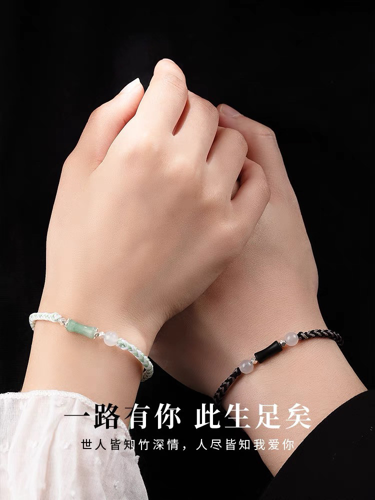 S925有你竹矣竹节情侣手链纯银一对高级感小众编织手绳七夕节礼物