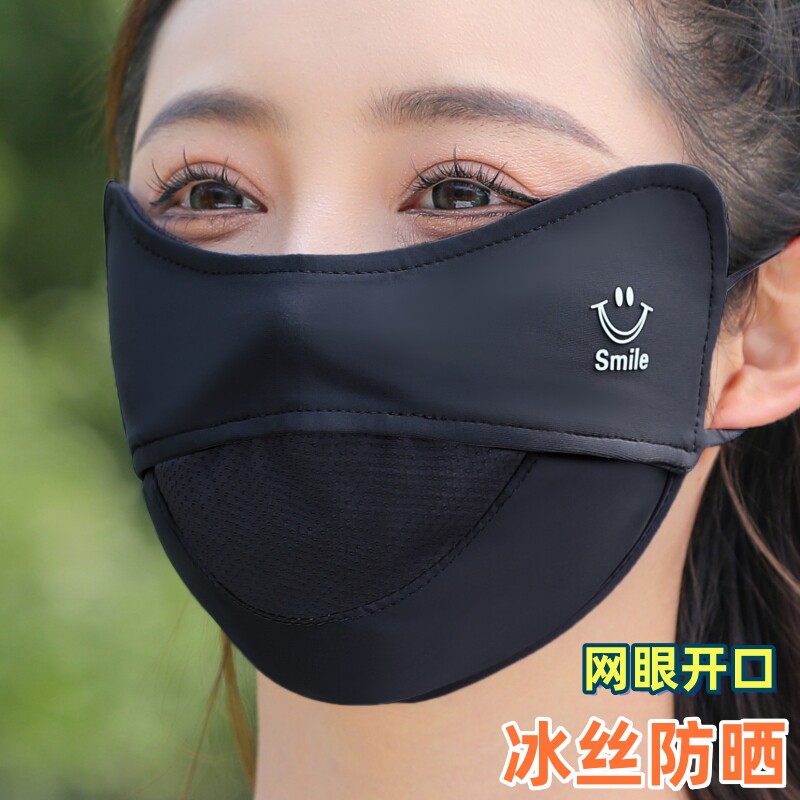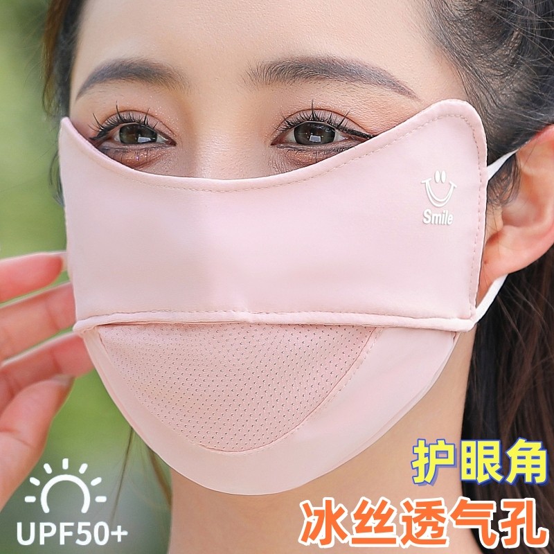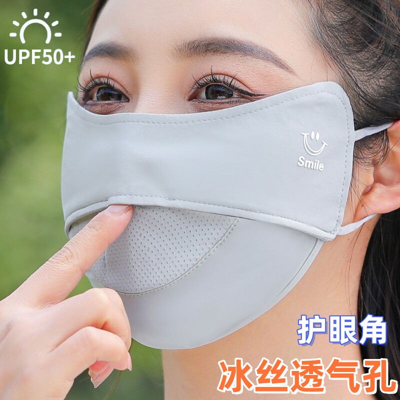防晒口罩男女夏冰丝透气全脸护眼角防紫外线薄款 户外跑步遮阳面罩