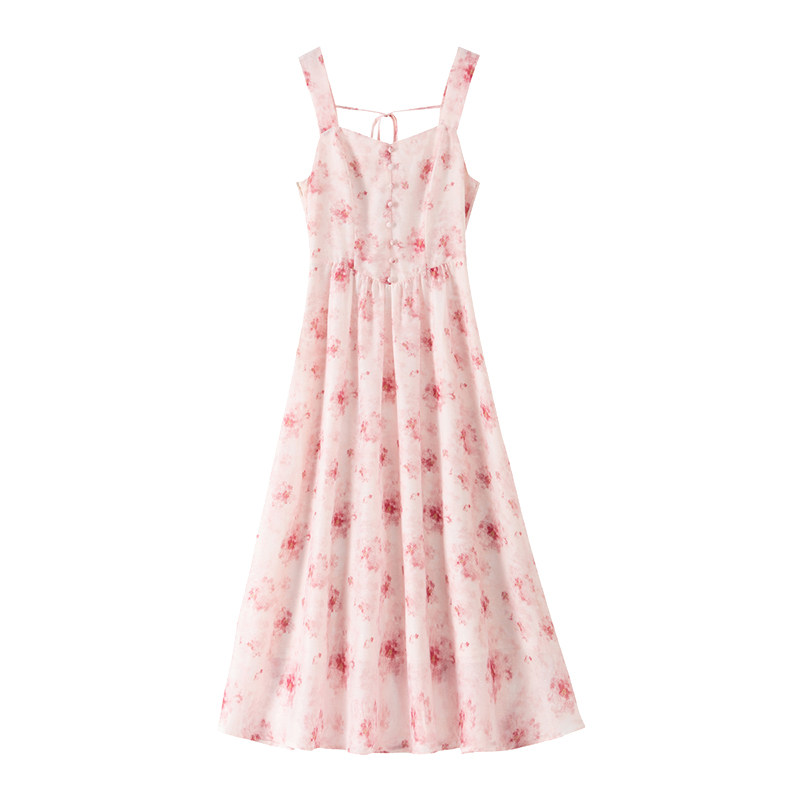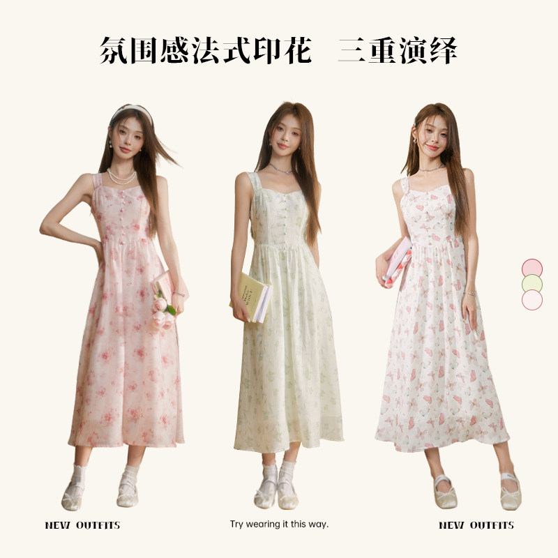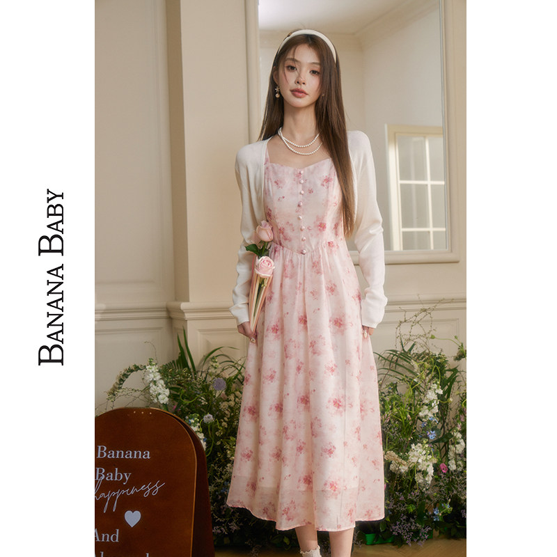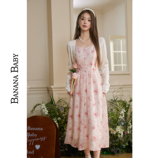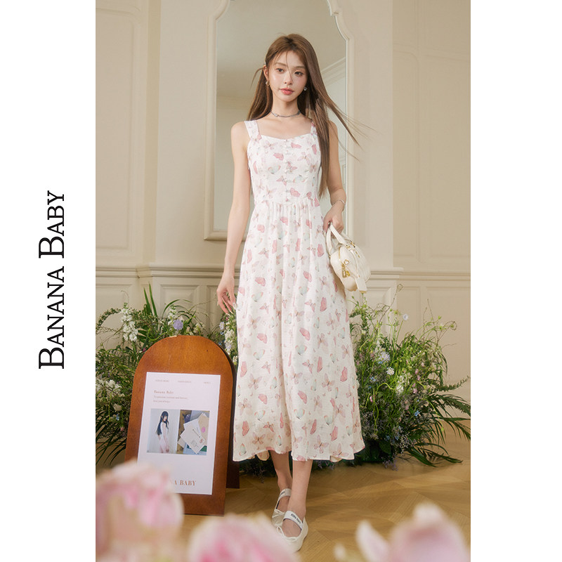 BANANA 薄荷曼波绿度假风印花吊带连衣裙女中长裙 BABY2025新款