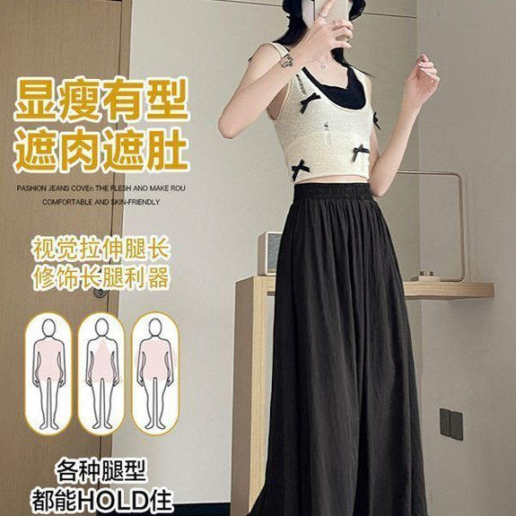 胖mm300斤山本裙裤 大码 女夏季 垂感阔腿裤 裙 单 高腰宽松裤 两件装