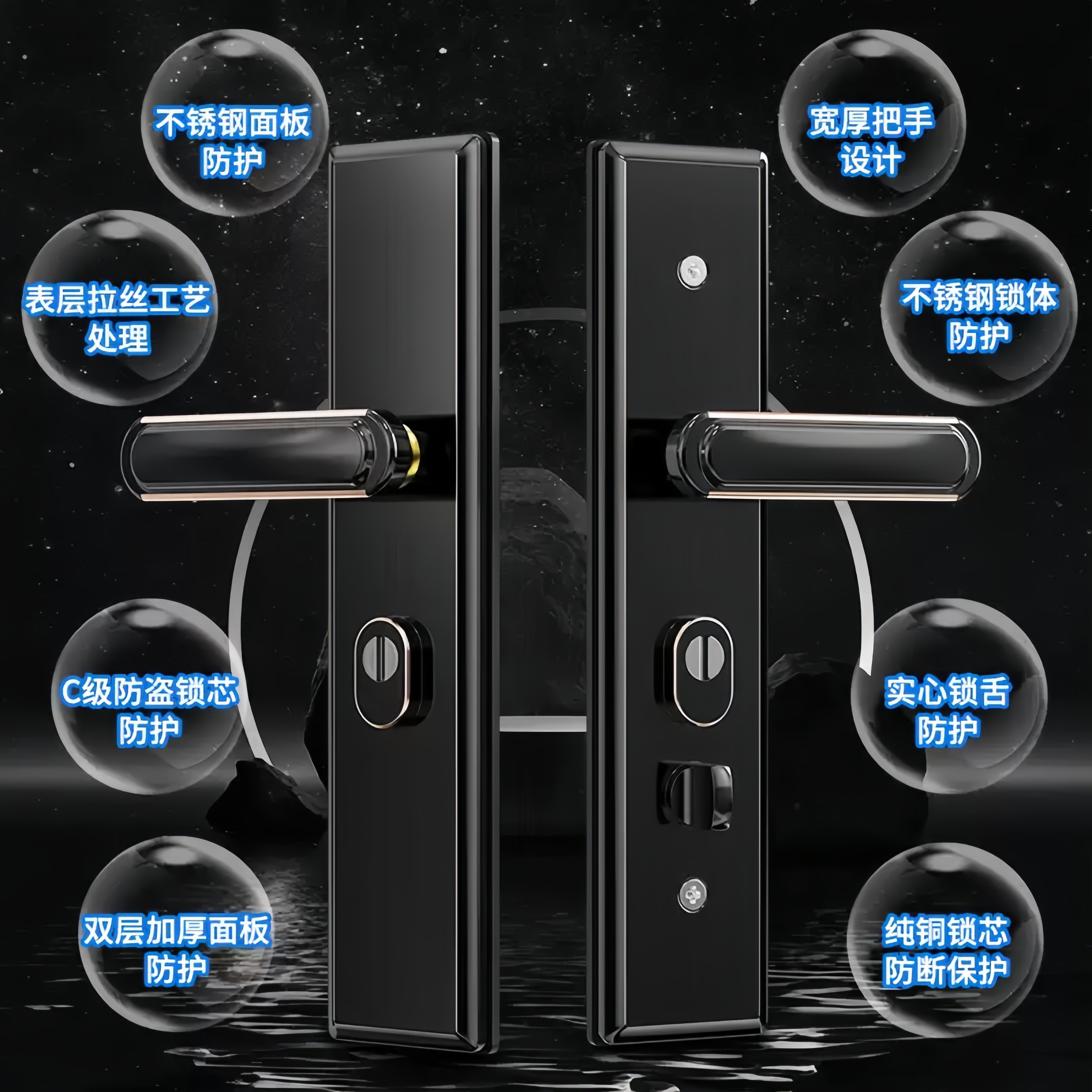 防盗门锁套装 C级家用通用型不锈钢入户门锁木门大门锁机械锁具