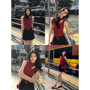 上衣设计感 聚焦镂空露锁骨吊带女外穿半高领无袖 MULVAN 天菜背心