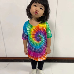 圆领 彩虹休闲tee短袖 儿童纯棉手工扎染T恤1 3岁宝宝夏季