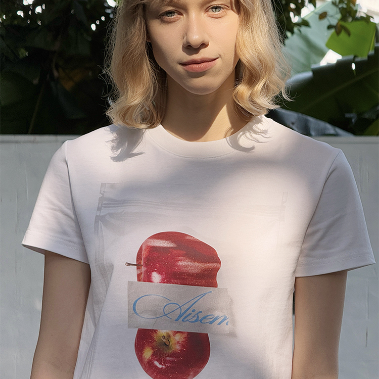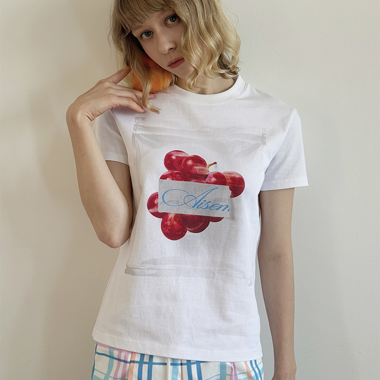 短袖 Aisement25ss夏日我爱 蔬菜彩色白色正肩修身