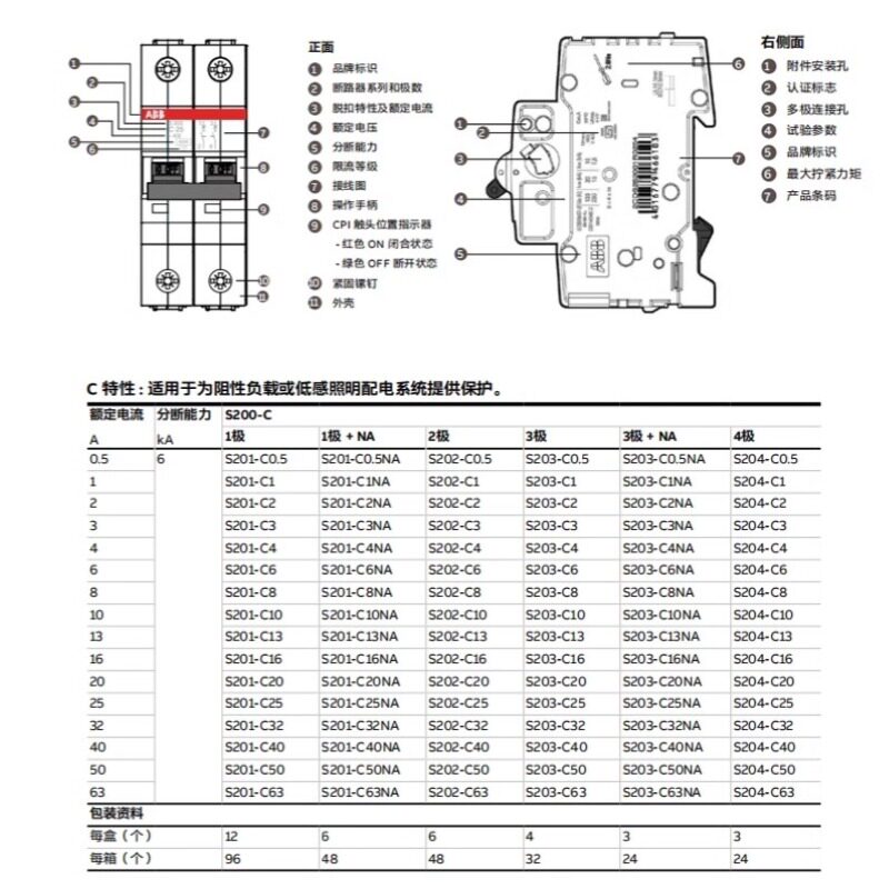 C10 C16 C40 S202 C63 C32 S203 C25 ABB空气开关断路器S201 C20