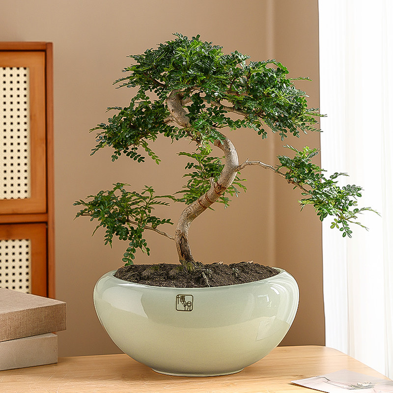 中式 珍椰子绿植水培盆景陶瓷摆件大小号 米竹苔藓球专用花盆室内袖