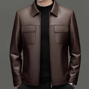中年外套装 皮夹克爸爸冬装 皮衣中老年加绒加厚男士 啄木鸟2025新款