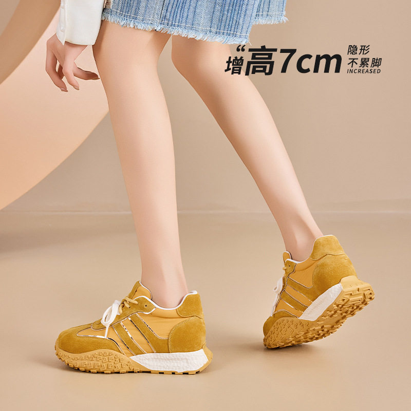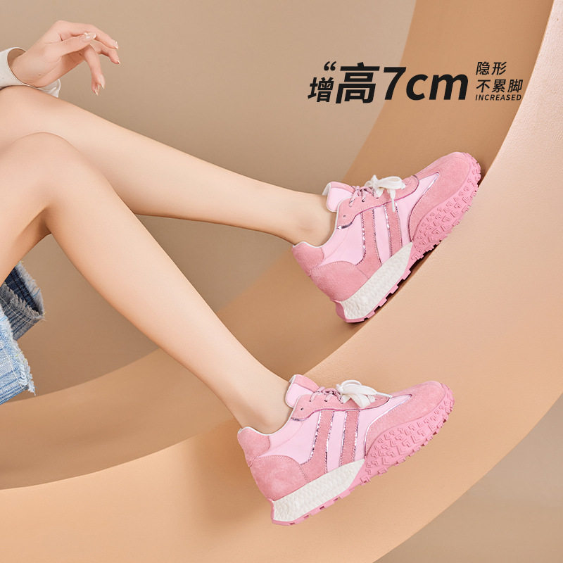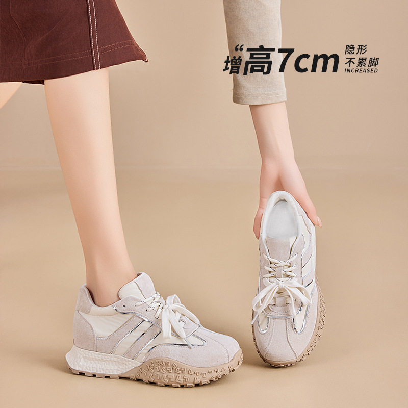 厚底百搭休闲轻便阿甘鞋 新款 透气 女2026春季 内增高7CM真皮德训鞋