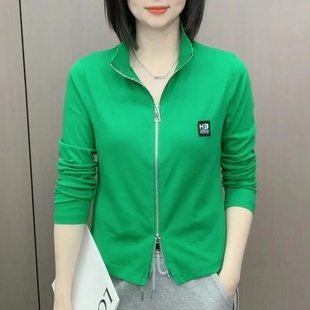 洋气宽松显瘦百搭设计感上衣女 新款 长袖 双拉链立领T恤女2025春季