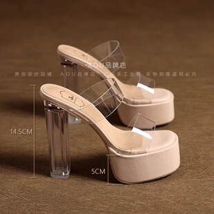15CM走秀凉拖鞋 透明高跟鞋 女夏季 恨天高防水台凉鞋 不累脚 2026新款