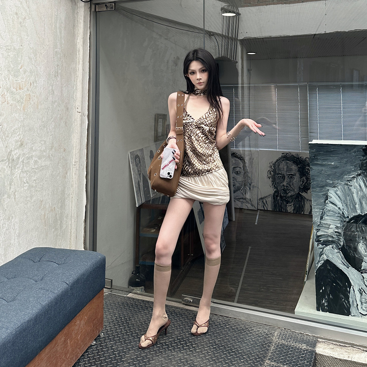 围巾石头纹缎面设计感修身 Common 性感辣妹吊带 0120 背心女