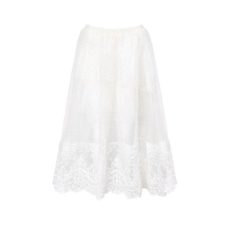 胖mm重工网纱刺绣拼接蕾丝不规则蛋糕裙 大码 白色半身裙长款 女秋季