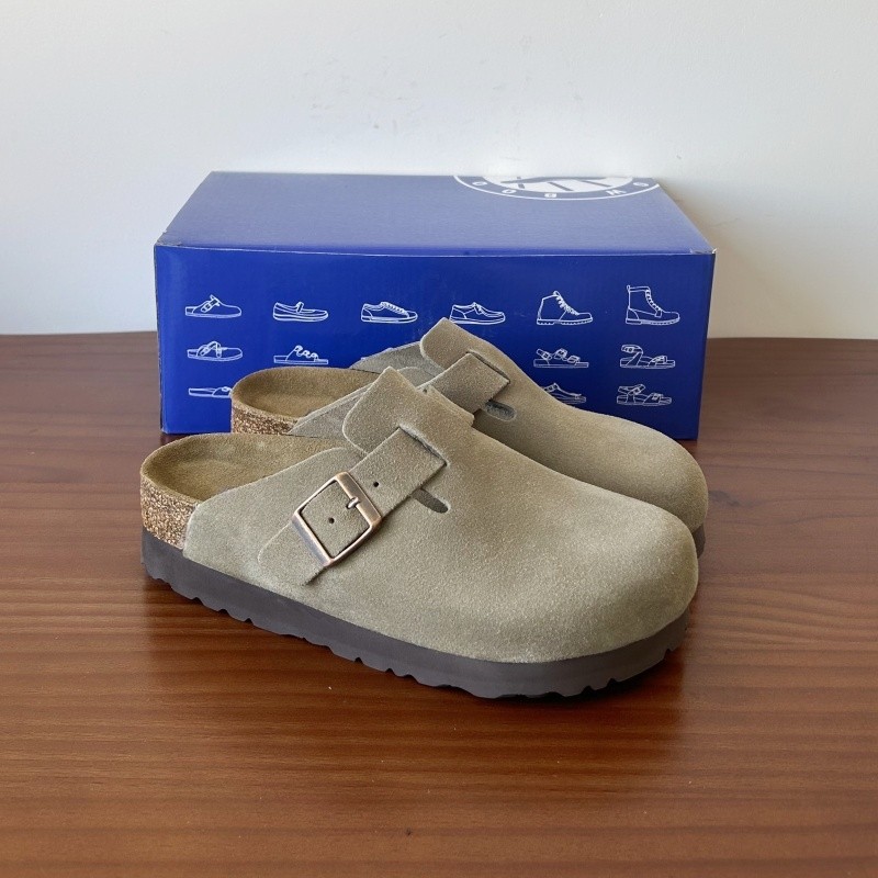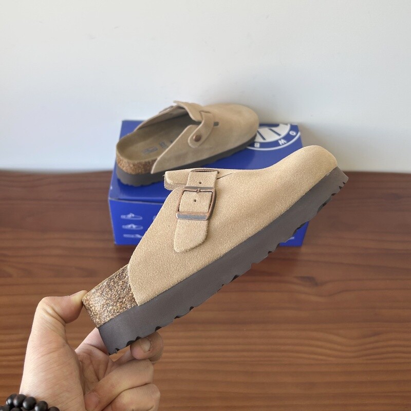 时尚 半拖女春夏季 外穿博肯 真牛皮橡木真皮包头拖鞋 厚底增高勃肯鞋