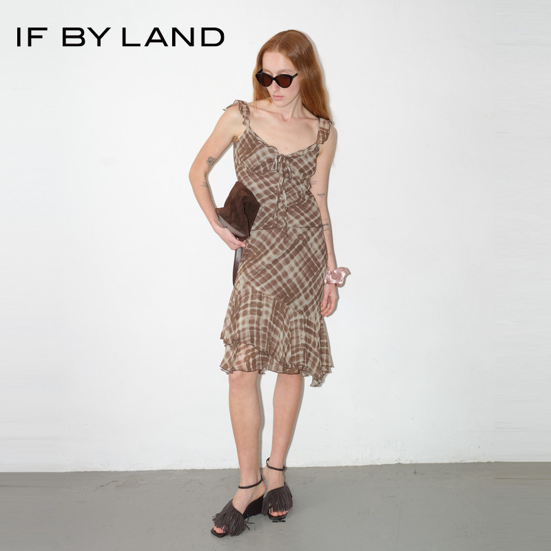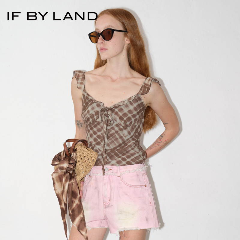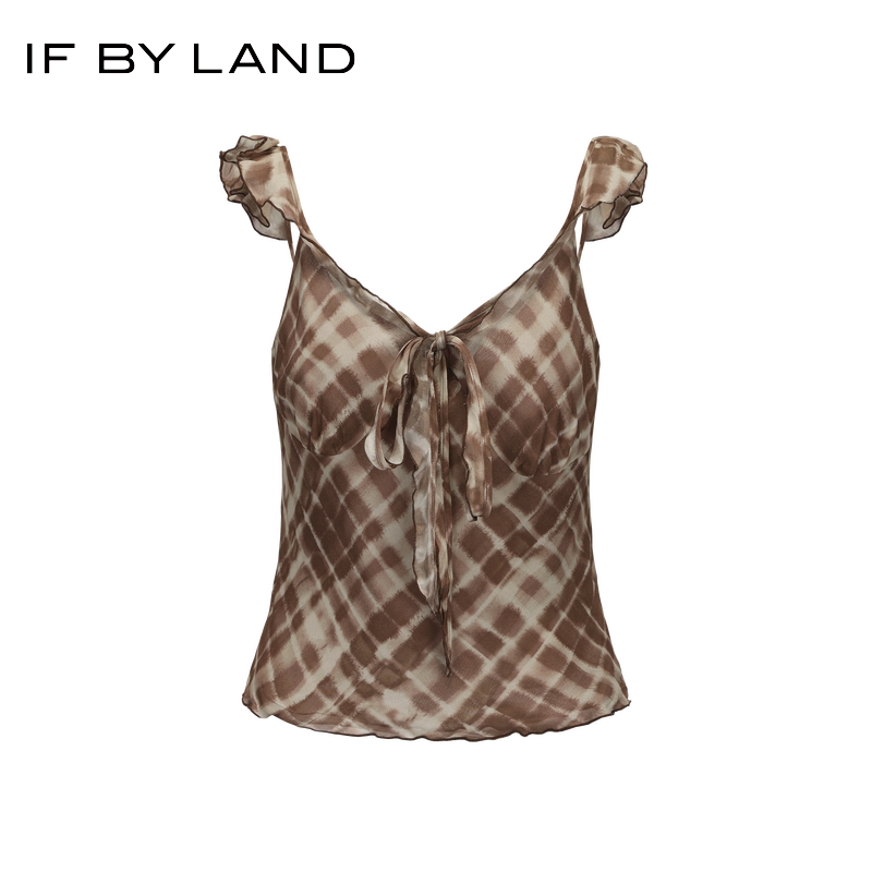 女装 新款 LAND印花雪纺系列2025年春季 格子吊带荷叶边背心