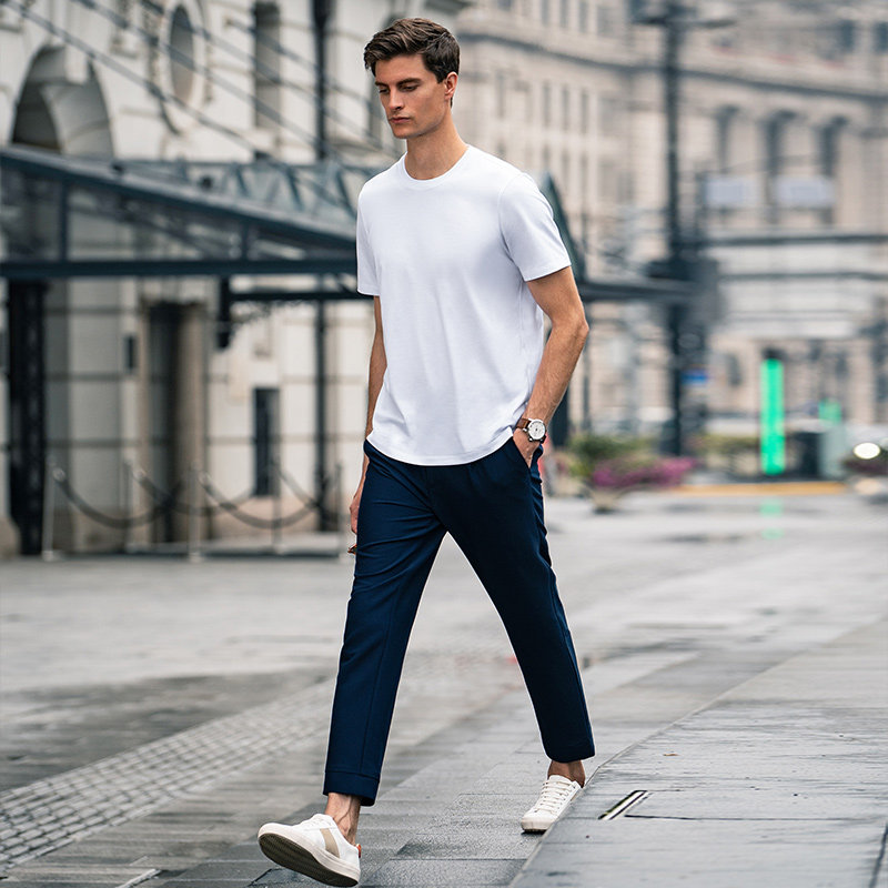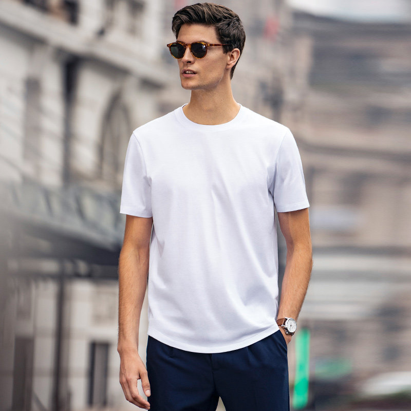 布先生轻奢显瘦弧形下摆纯色t恤柔软纯棉短袖 简约休闲AT681 男士