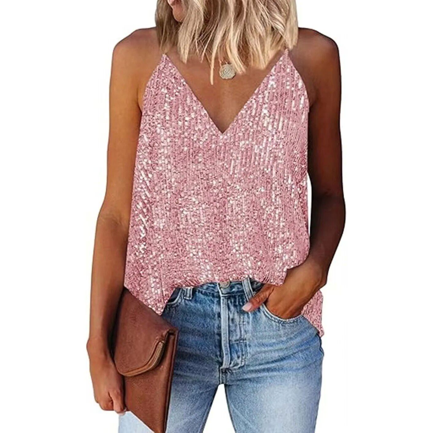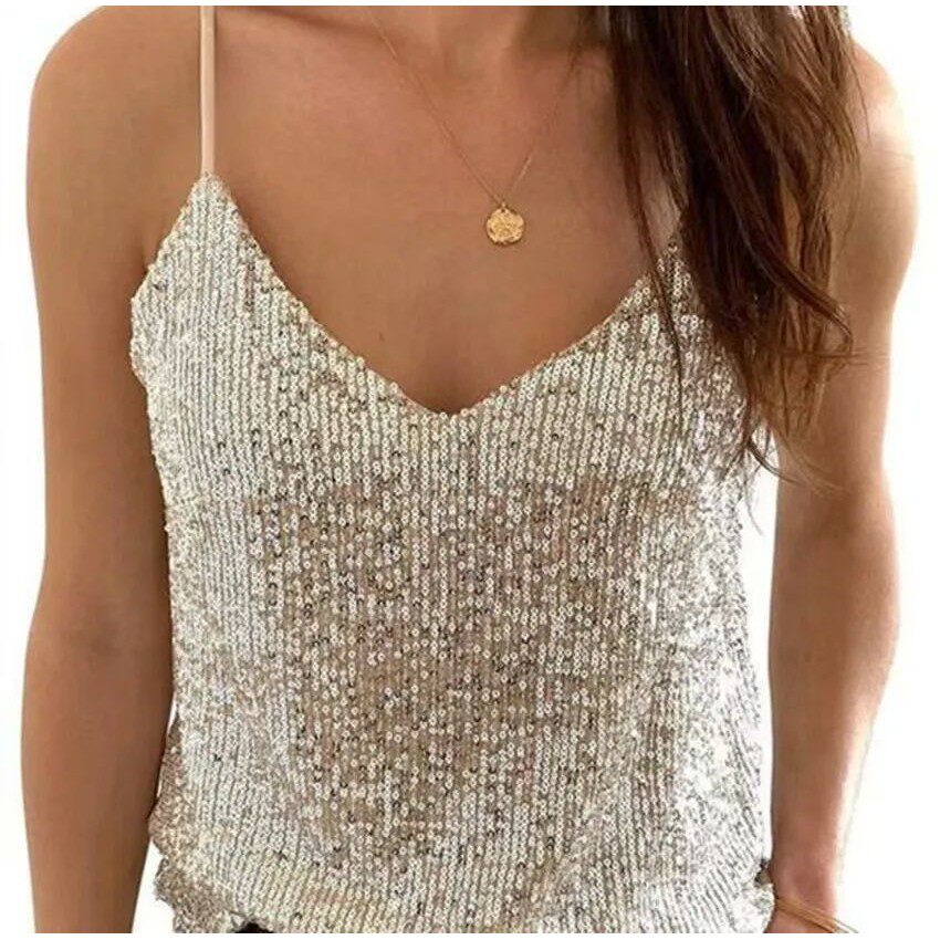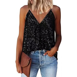 camisole sequined vest女装 夏季 V领亮片吊带背心2025 新款 neck