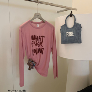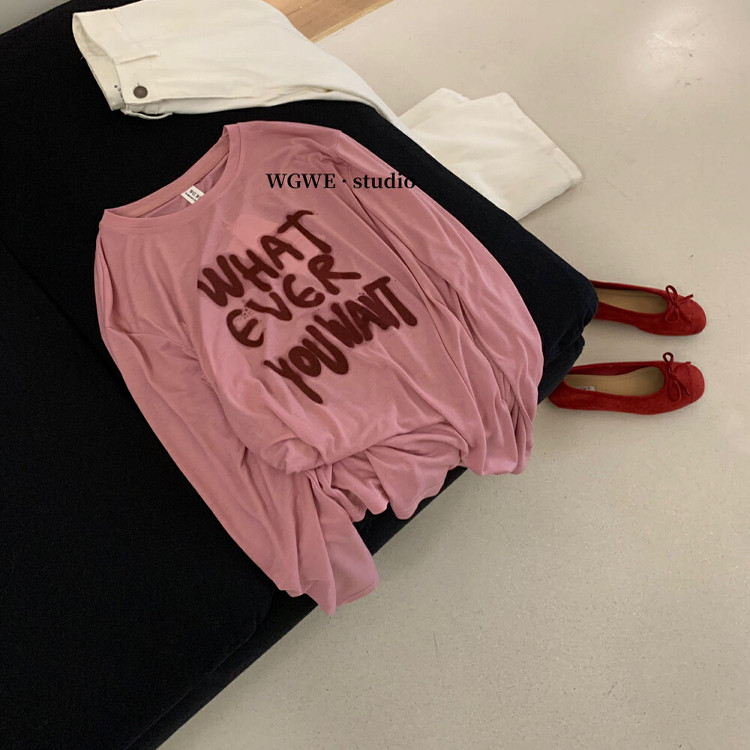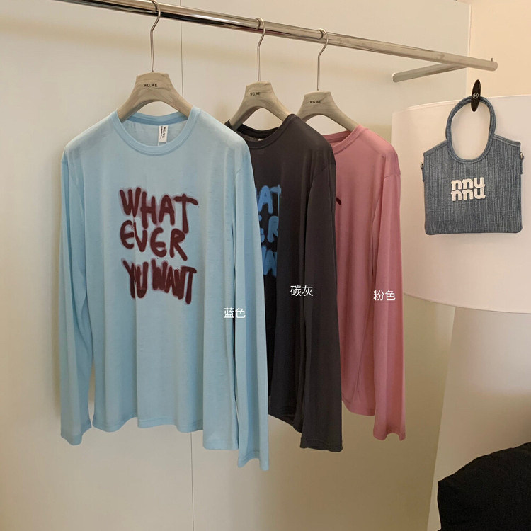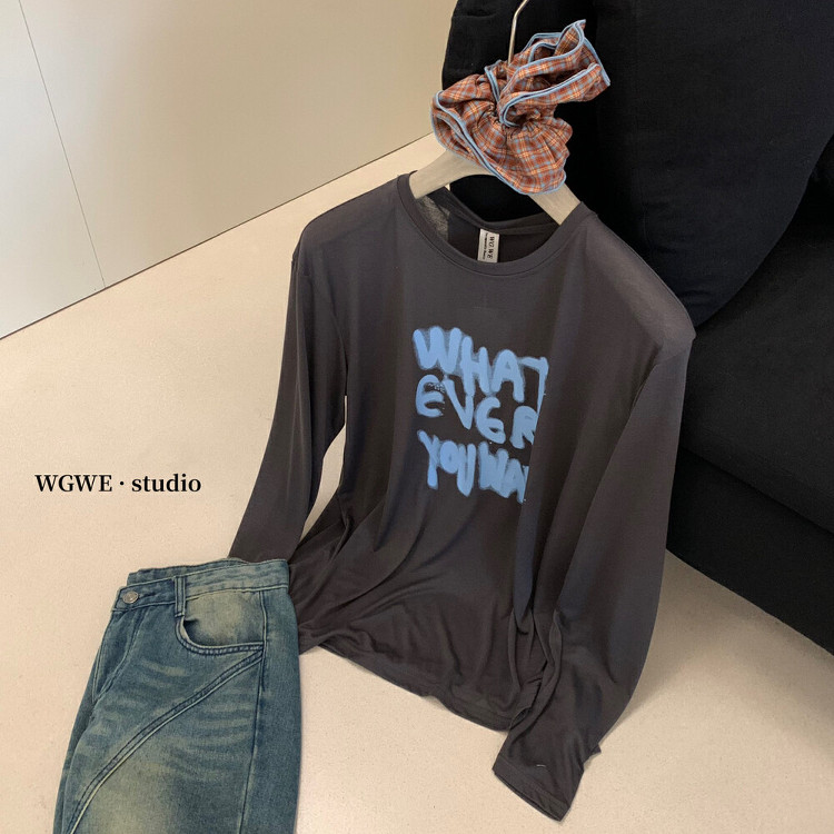 T恤女百搭防晒罩衫 懒人福音字母涂鸦轻薄长袖 上衣 夏日多巴胺