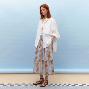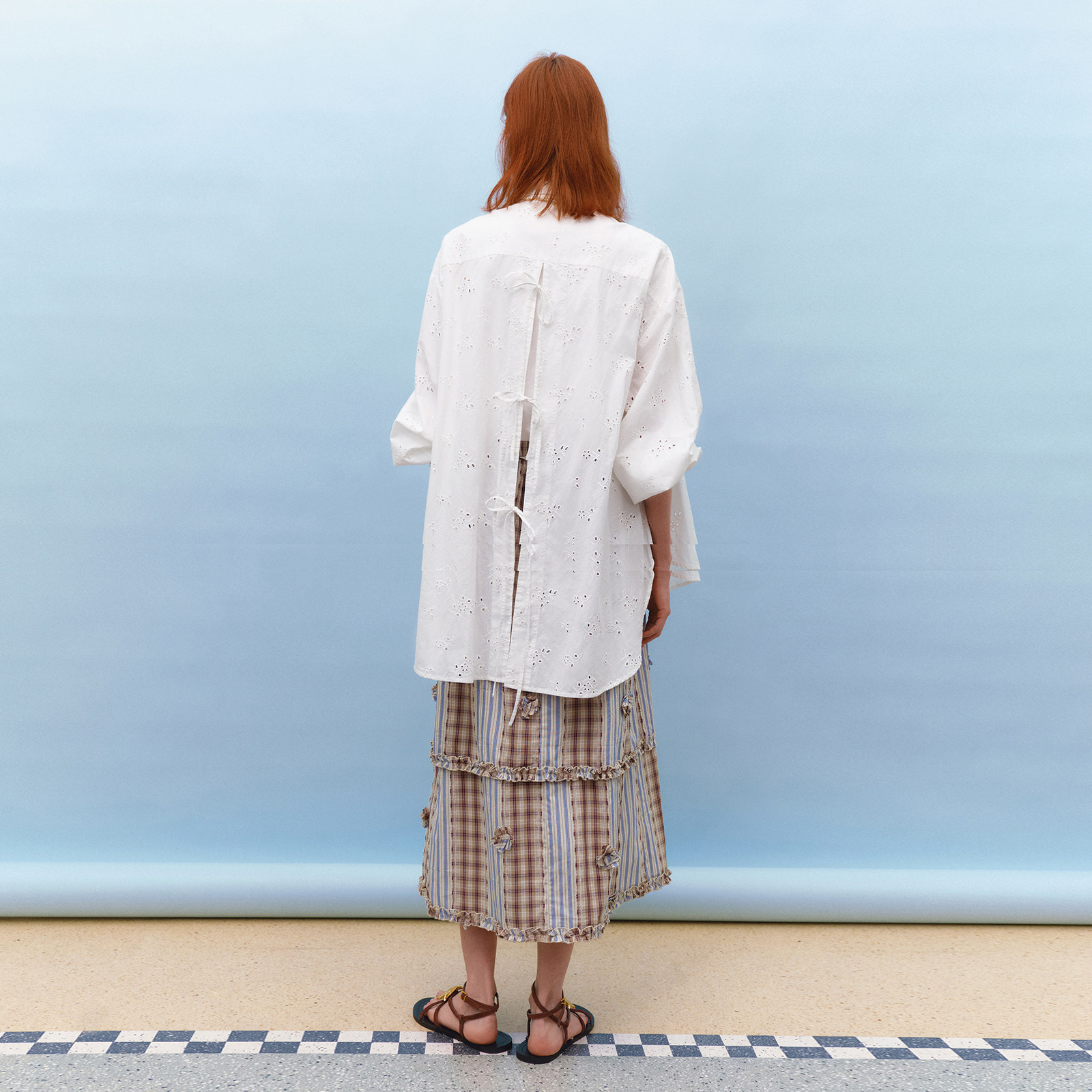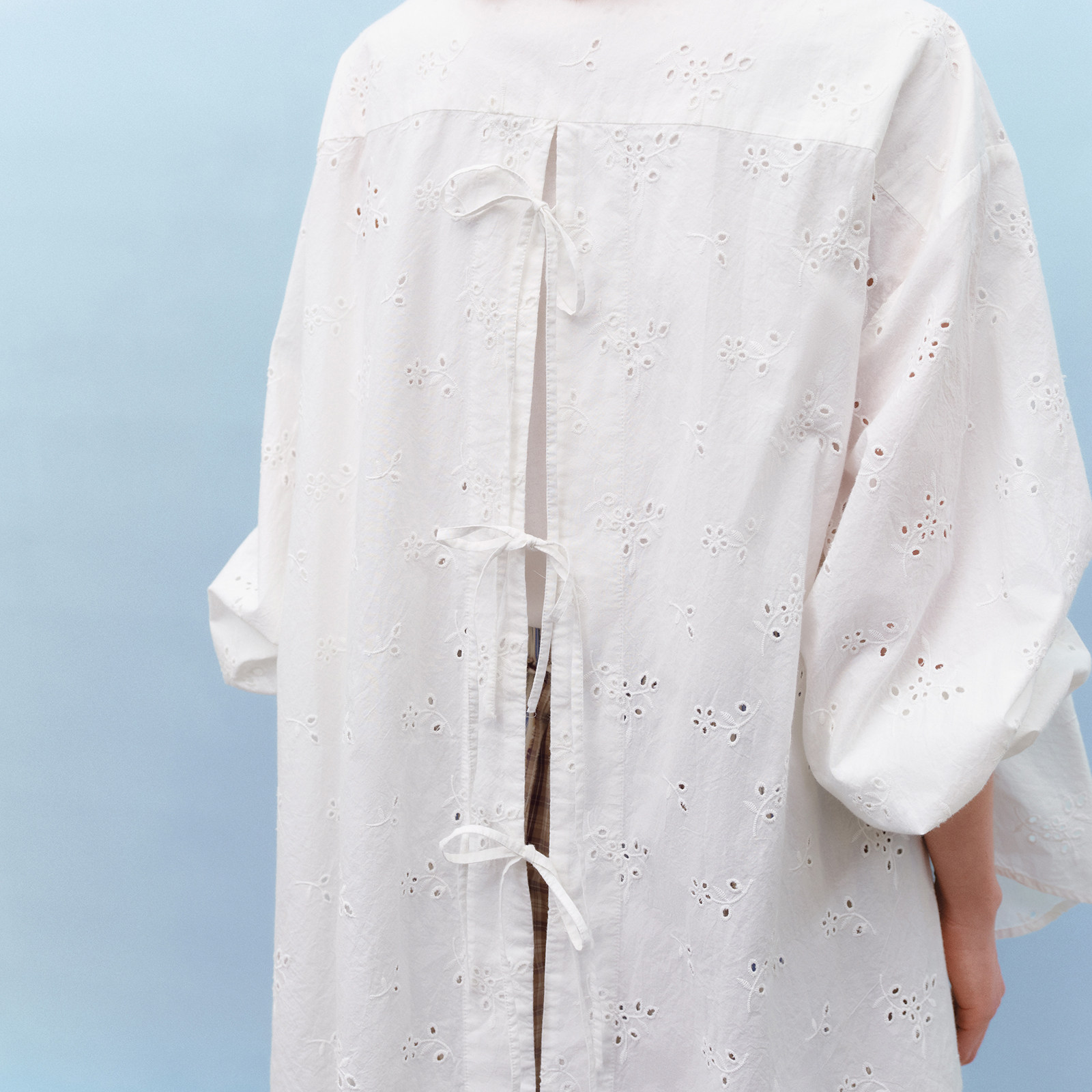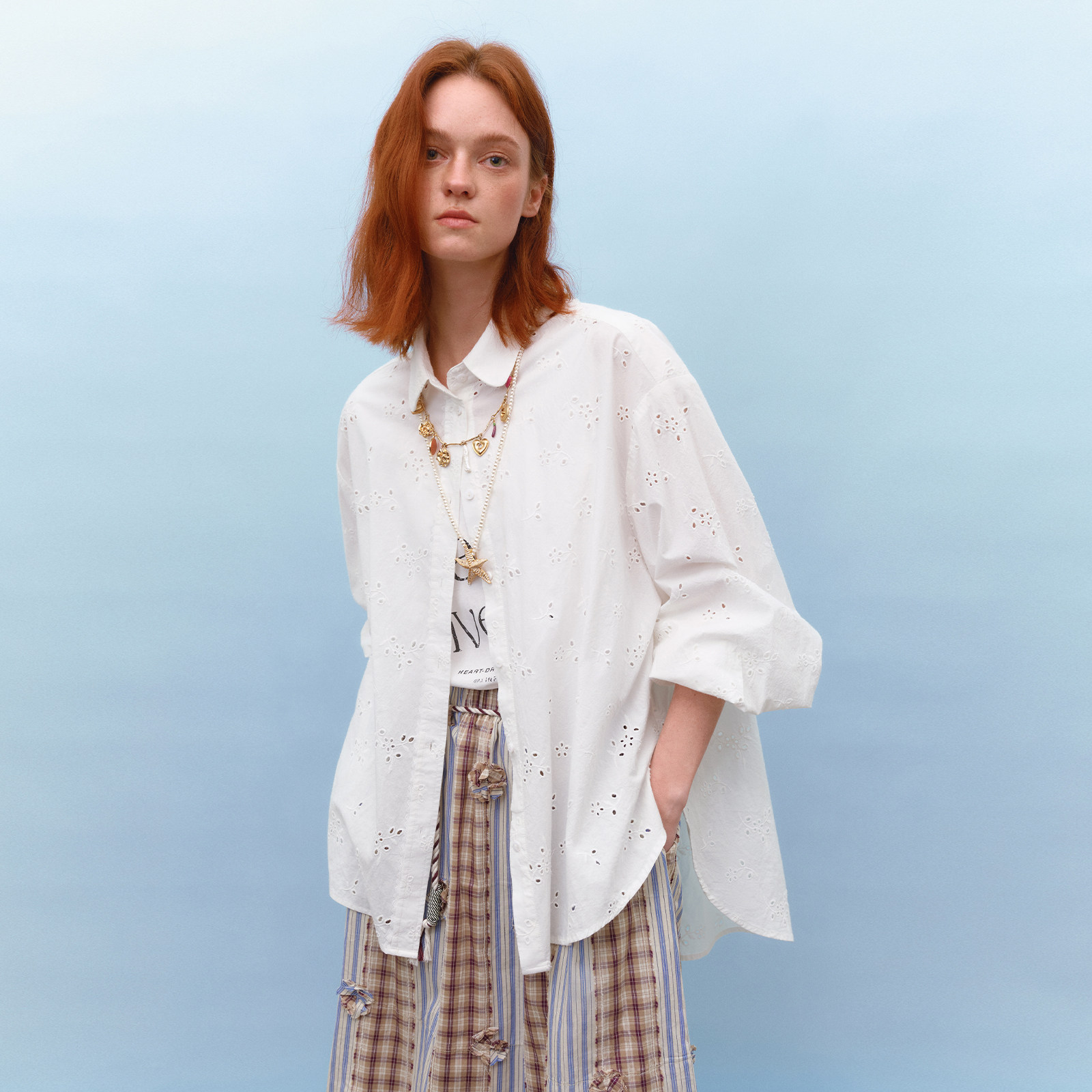 白色镂空刺绣后开叉设计感廓形衬衫 wana 新品 2025春季 try纯棉衬衫