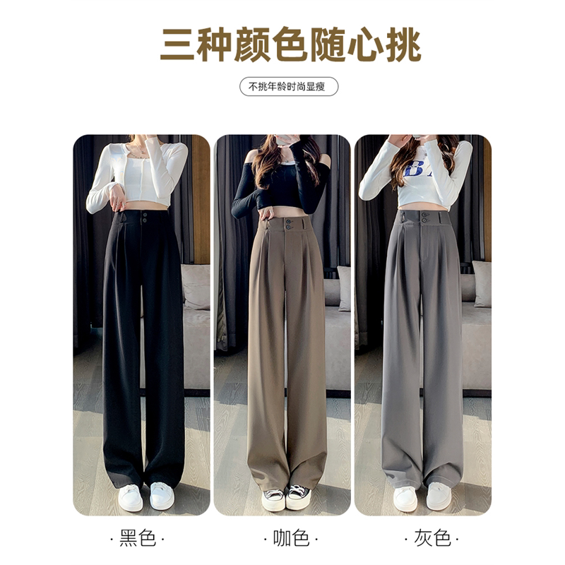 子显瘦西装 裤 阔腿梨形高腰垂感裤 直双扣筒裤 身材休闲 女春秋窄版