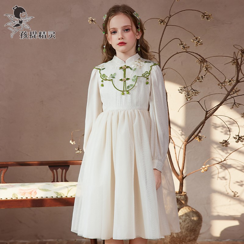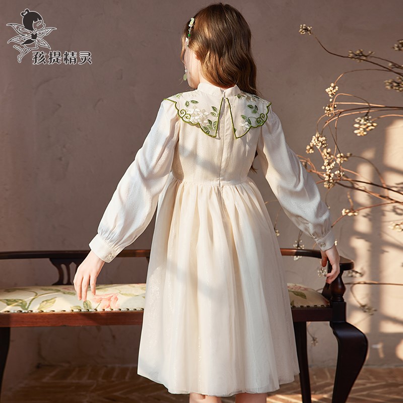 洋气儿童蕾丝公主裙中大童裙子 新款 女童新中式 国风连衣裙2024秋装