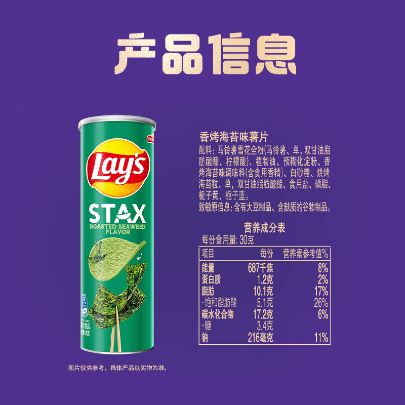 乐事STAX系列罐装 Lay’s 薯片香烤海苔味90gx1罐 王鹤棣推荐