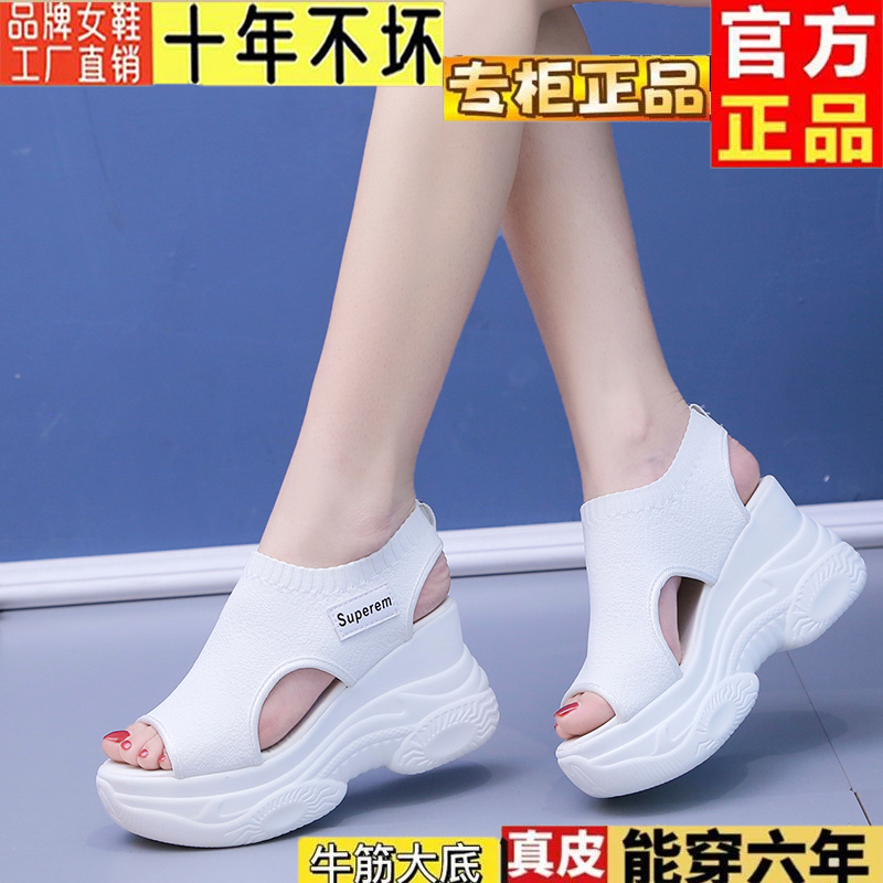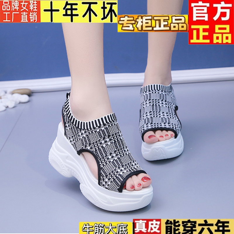 舒适鱼嘴内增高运动鞋 松糕韩版 女高跟罗马2025夏新款 厚底坡跟凉鞋