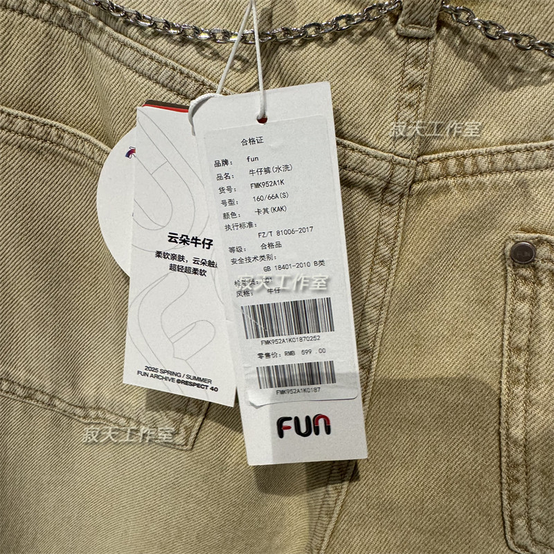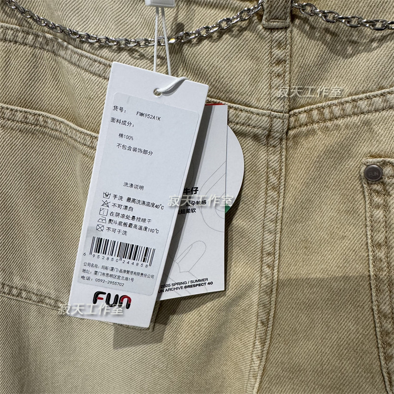 高腰显瘦直筒牛仔裤 代购 FMK952A1K 国内专柜正品 Fun潮牌2025夏季