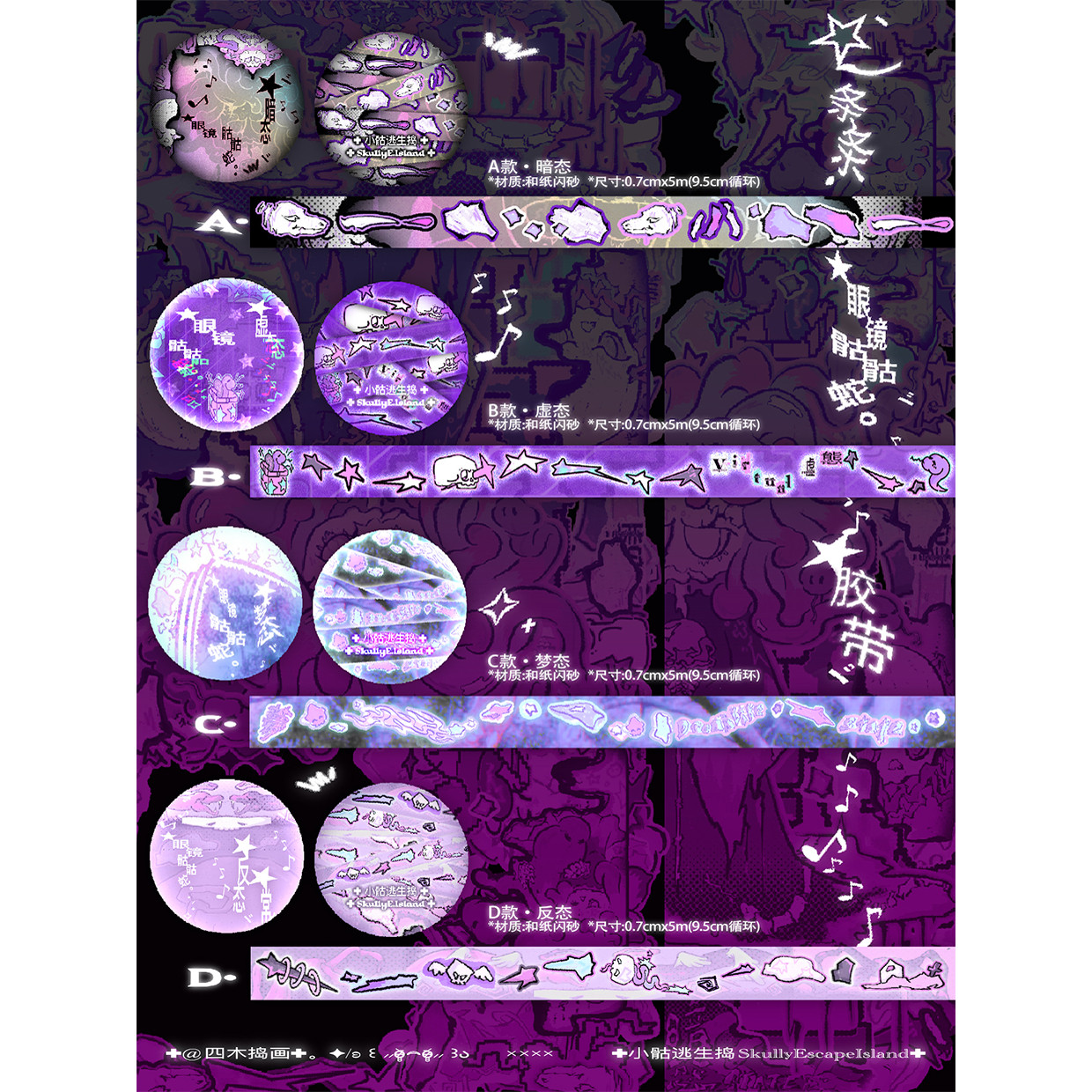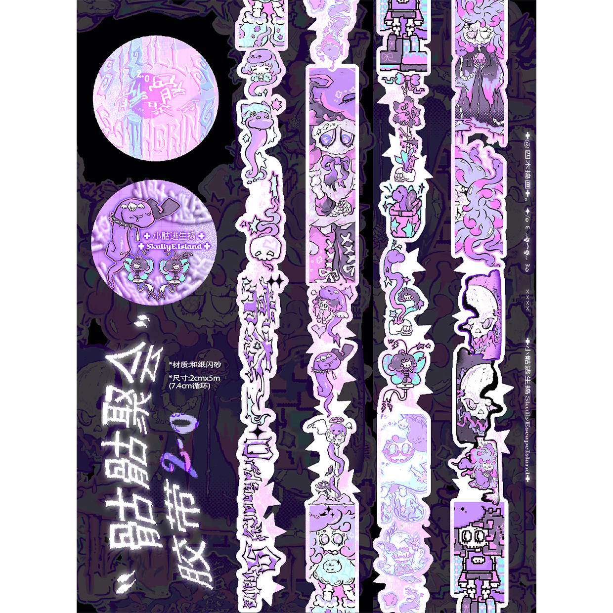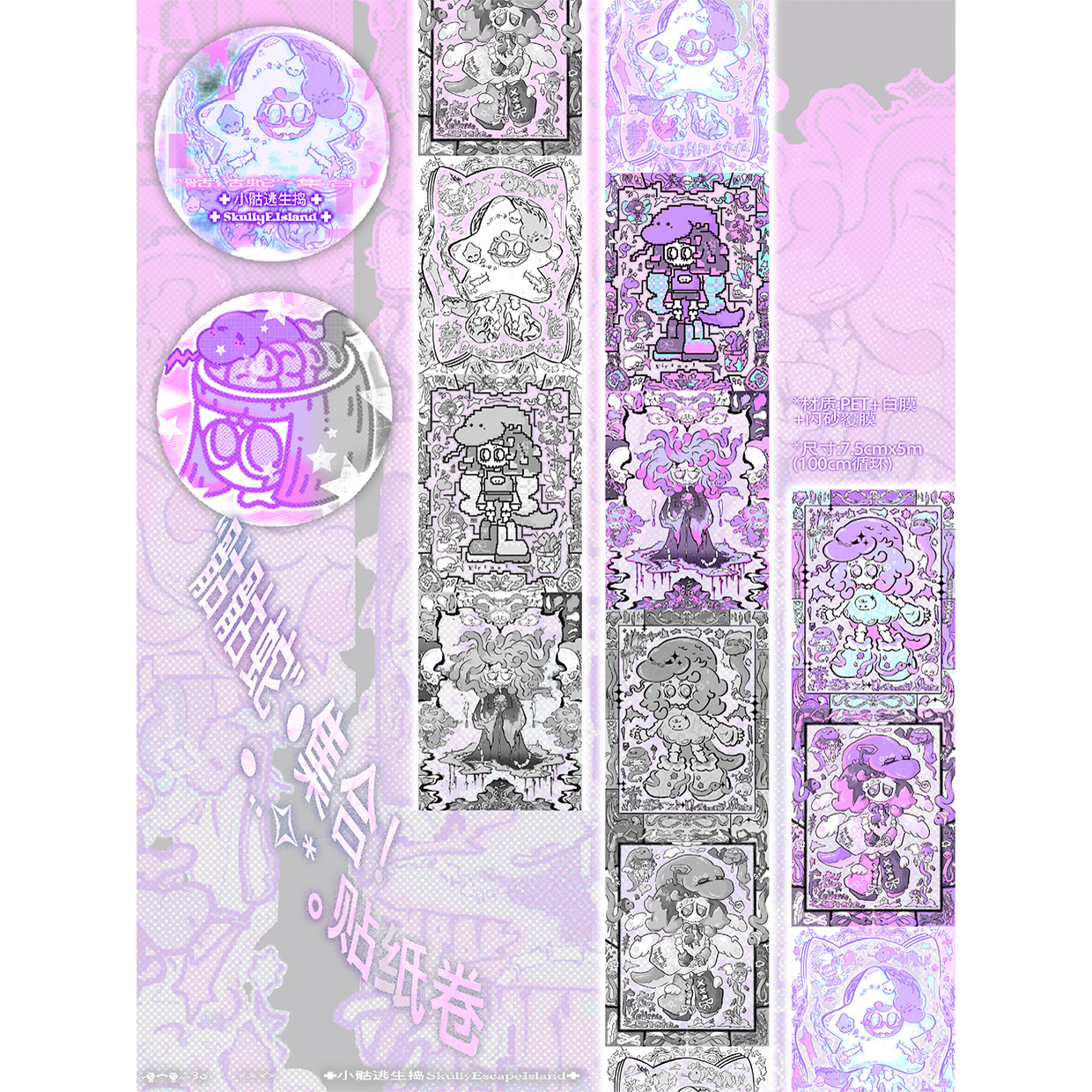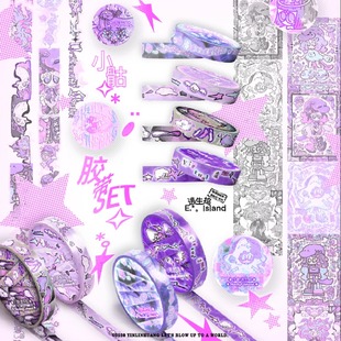 闪砂 胶带SET暗黑少女切膜贴纸卷拉条异形分装 逃生原创小 骷骷蛇