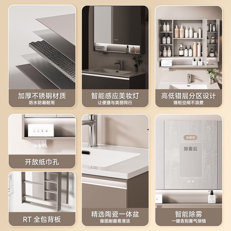 浴室柜组合一体盆陶瓷智能现代轻奢洗手盆洗脸池洗漱台洗面卫生间